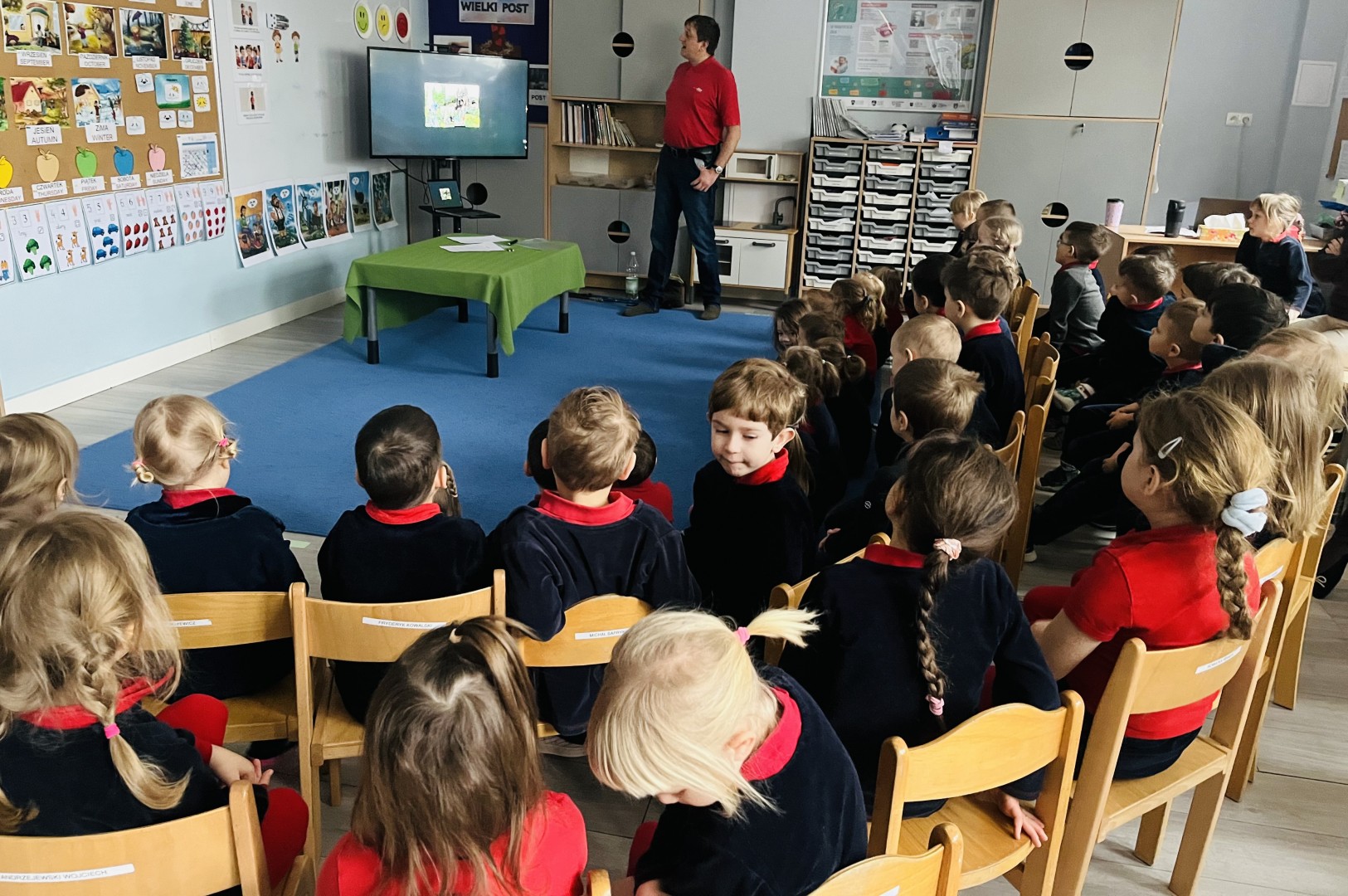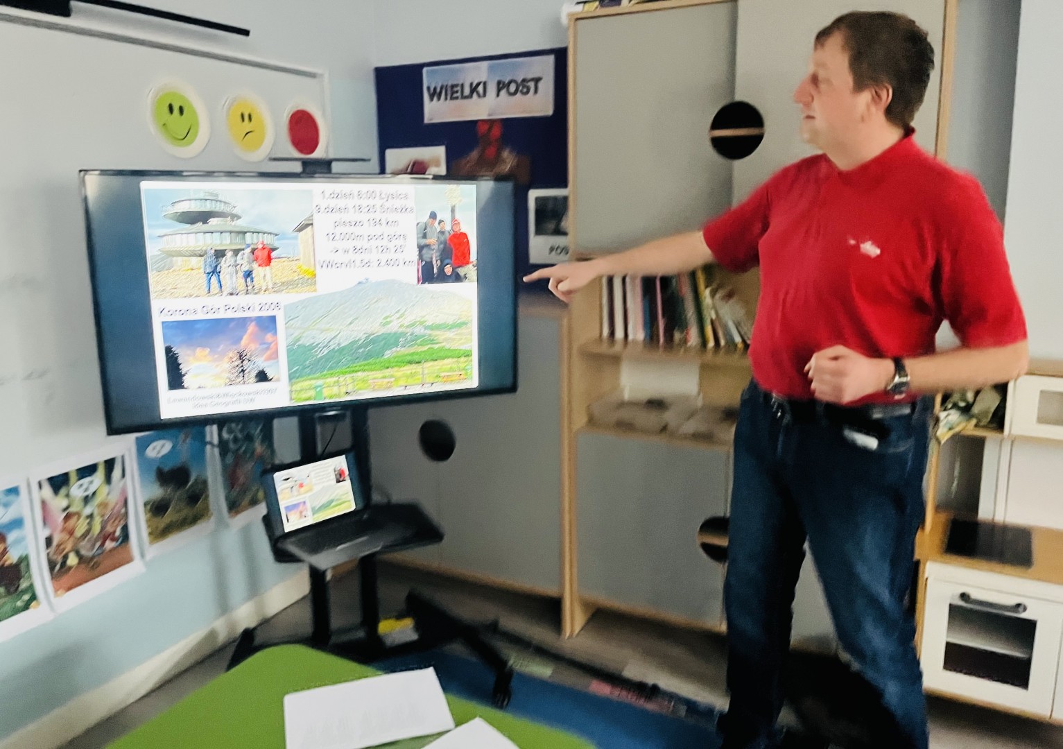 Podczas spotkania opowiedział dzieciom o Koronie Gór Polski oraz o swojej pasji do górskich wędrówek. W ciekawy i przystępny sposób wyjaśnił, na czym polega zdobywanie najwyższych szczytów poszczególnych pasm górskich w Polsce. Dzieci dowiedziały się, jak wyglądają przygotowania do wypraw, co należy zabrać w góry oraz jak ważne jest odpowiednie obuwie i strój.