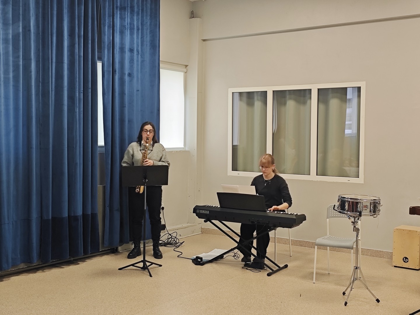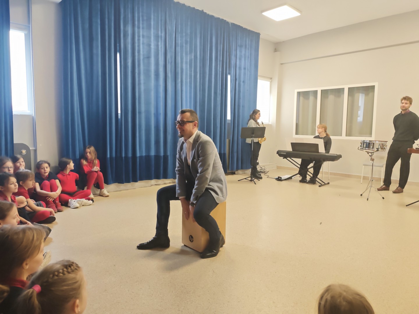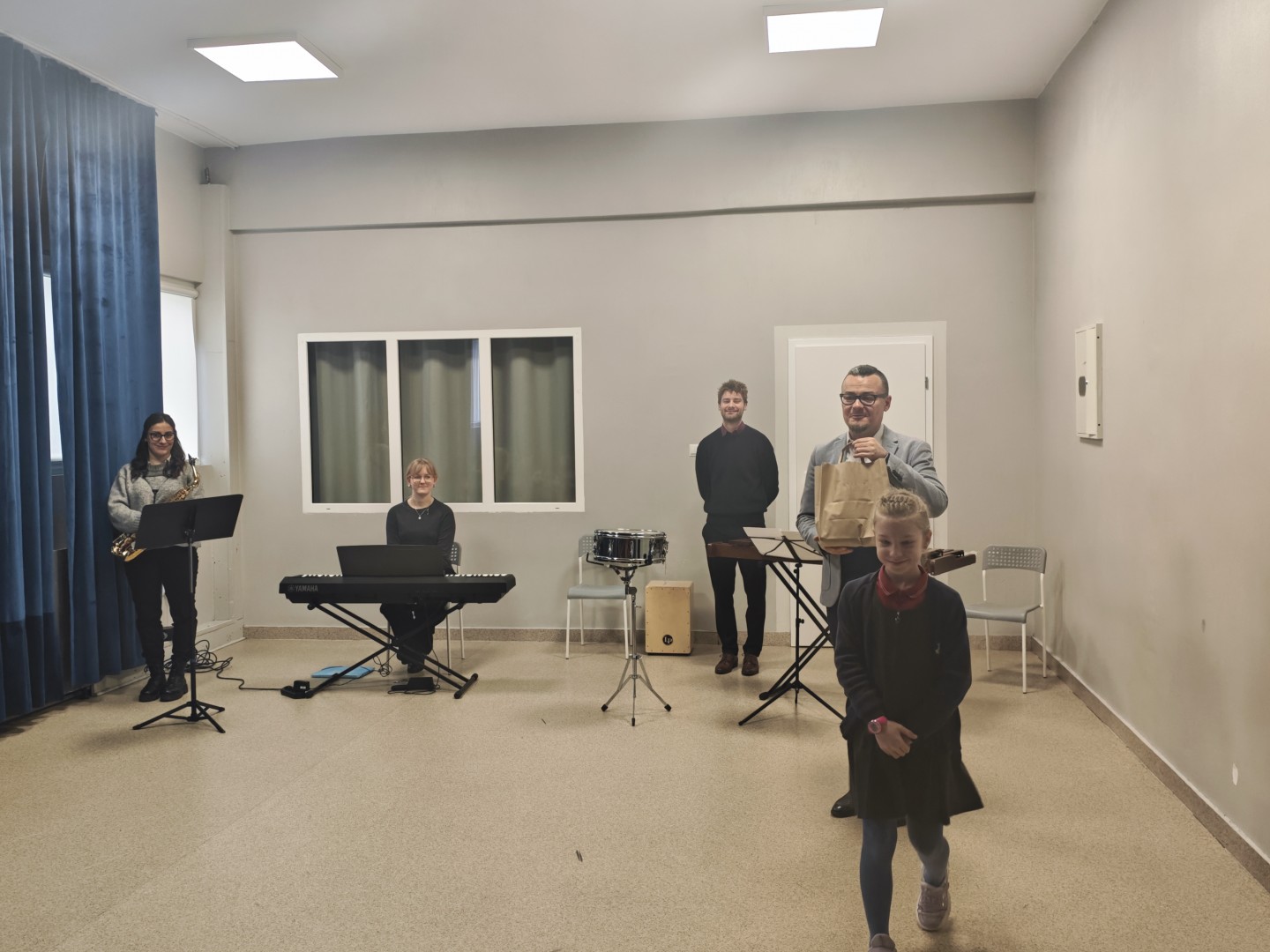 Program wydarzenia pozwolił nam poznać bogactwo brzmień płynących z połączenia różnorodnych instrumentów. Mieliśmy okazję usłyszeć nastrojowy saksofon, głębokie akordy pianina oraz energetyczną sekcję perkusyjną, w skład której weszły werbel, ksylofon i cajon. Mieliśmy okazję usłyszeć m.in. niezwykle nastrojowe Gymnopédie No. 1 Erika Satie oraz dynamiczne, pełne tajemnicy Danse Macabre Camille’a Saint-Saënsa. To niezwykłe spotkanie było dla nas nie tylko lekcją muzyki, ale przede wszystkim zachętą do rozwijania własnej wyobraźni i uważnego wsłuchiwania się w świat.
