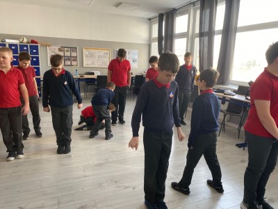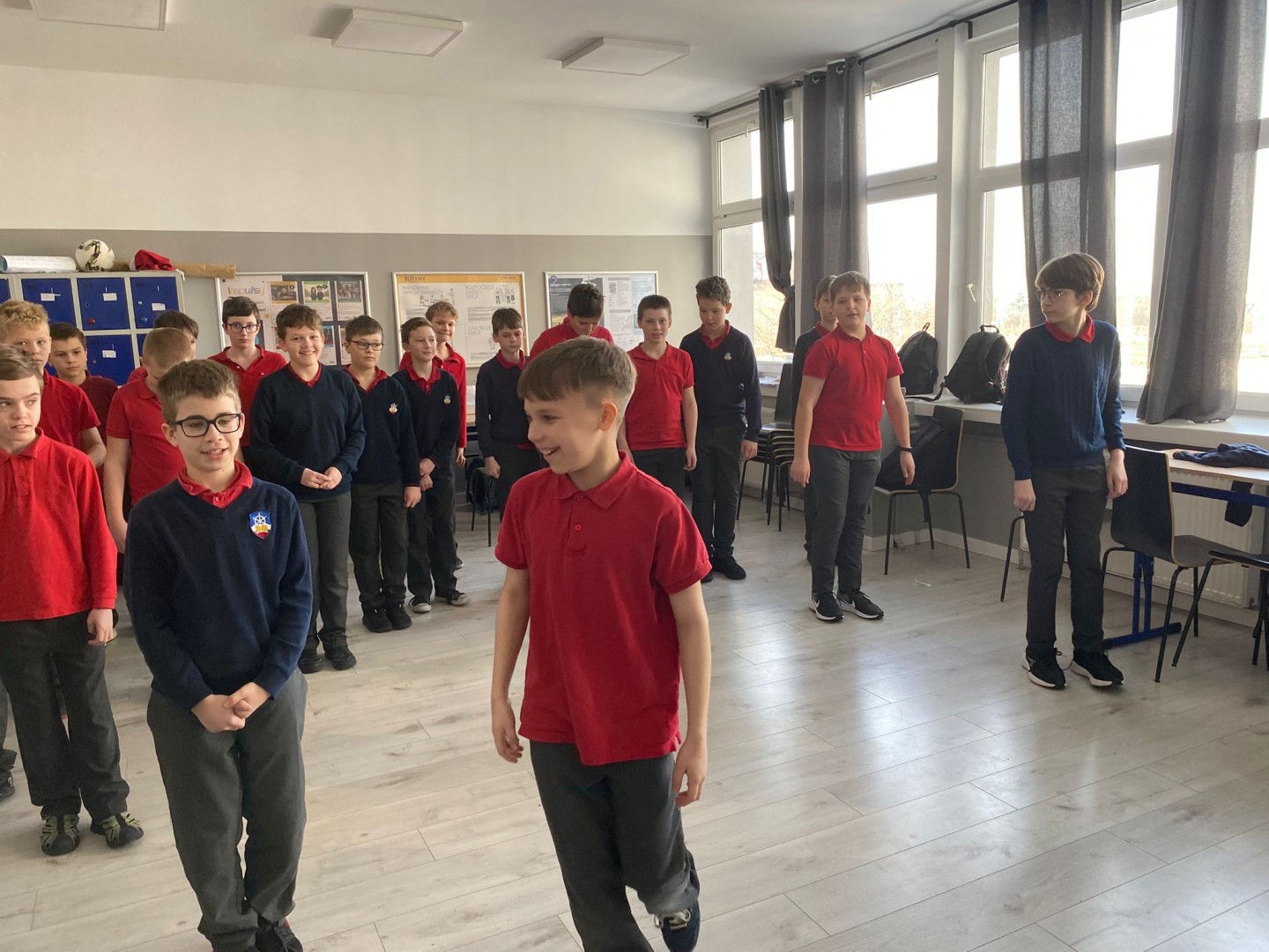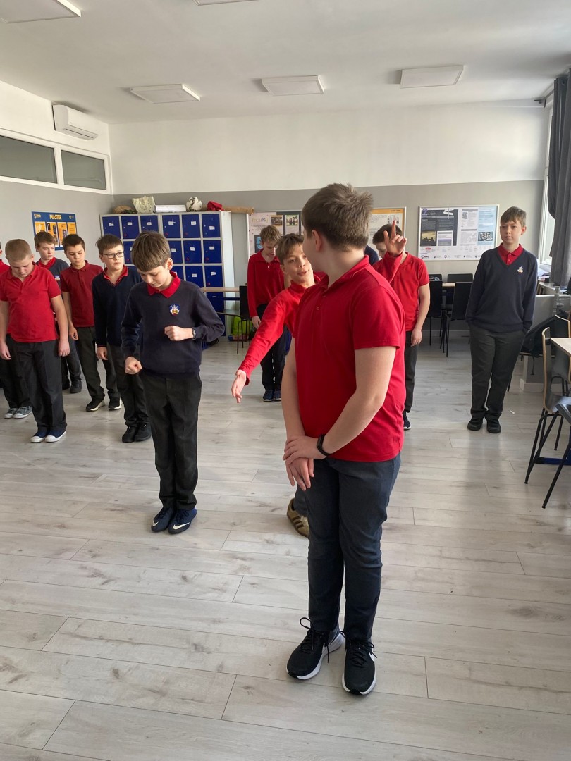 Następnie przeszliśmy do praktyki. W zabawie „Bieg żółwi” uczniowie ćwiczyli kontrolę impulsów, poruszając się jak najwolniej bez zatrzymywania się. Dużym wyzwaniem okazała się także „Minuta ciszy” – dopiero za trzecim podejściem udało się wytrwać pełne 60 sekund w skupieniu. Była to wartościowa lekcja pokazująca, że cierpliwość można – i warto – trenować każdego dnia.