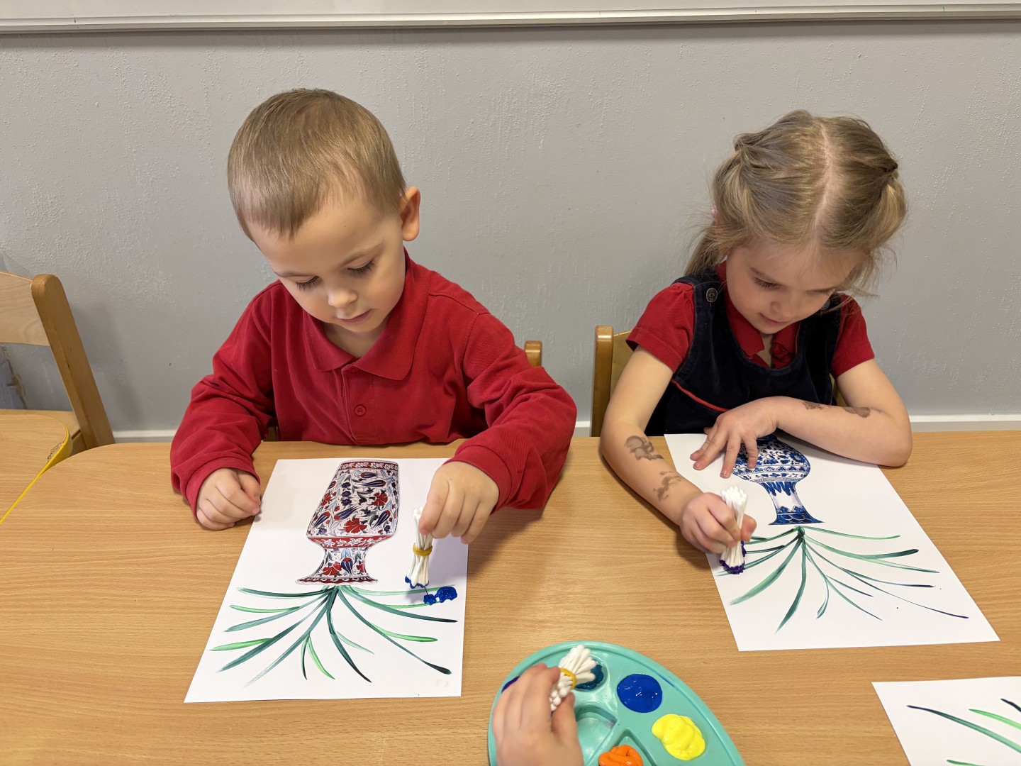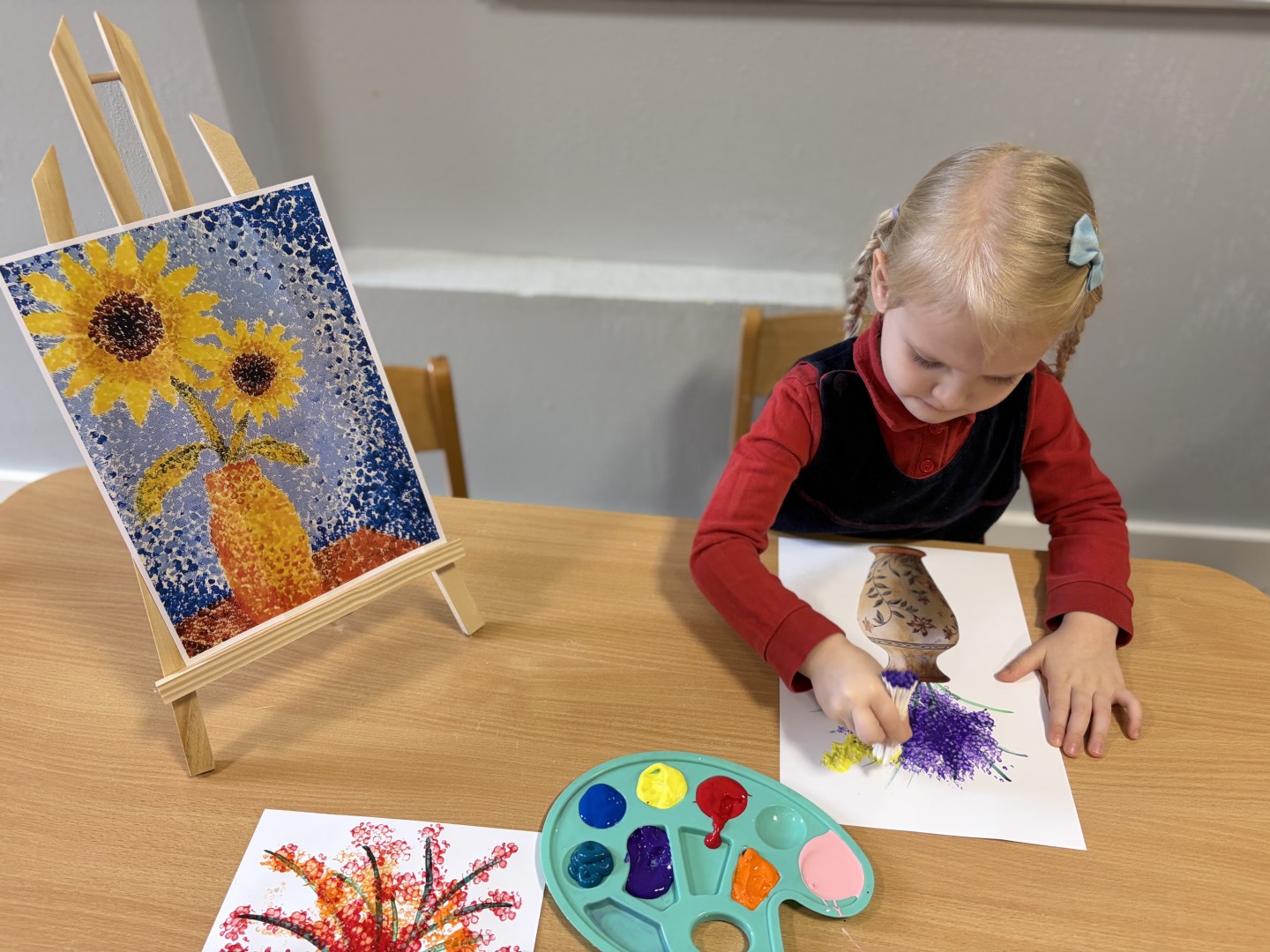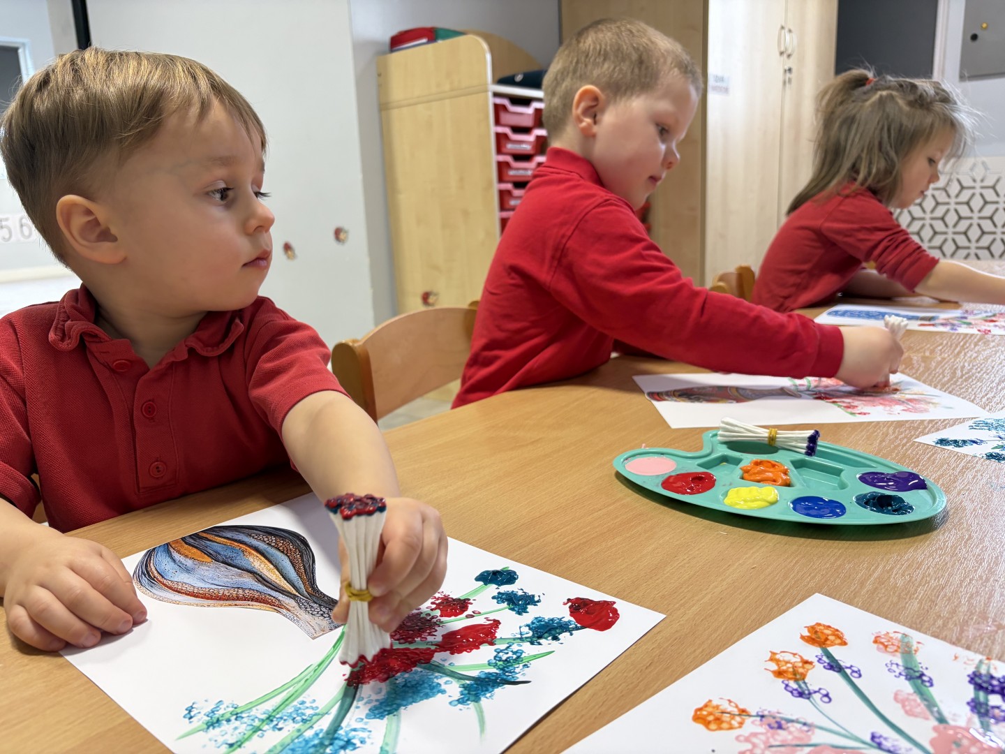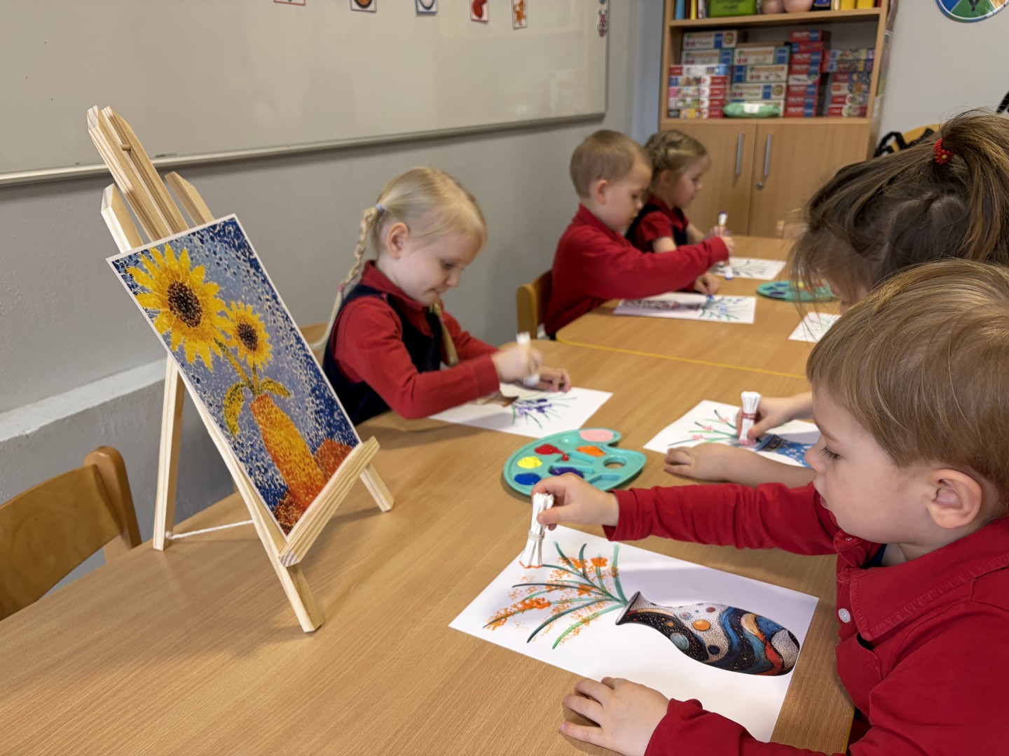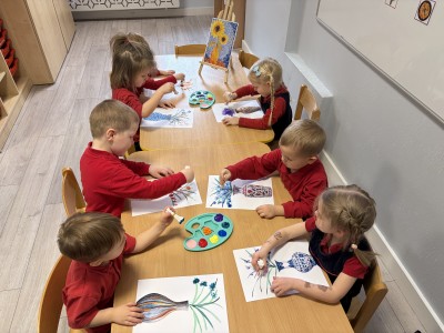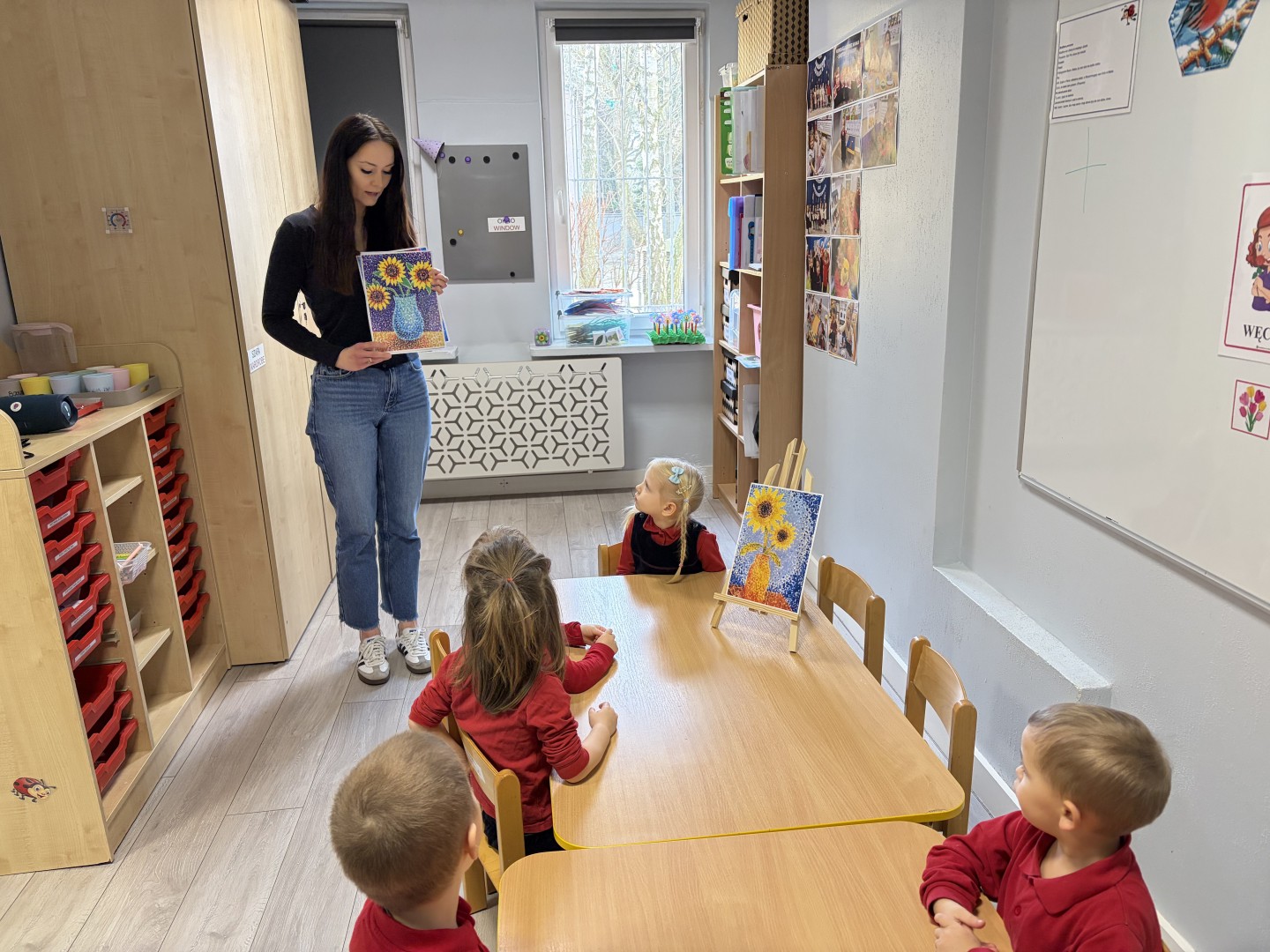 W zeszłym tygodniu przedszkolaki wykonały piękną pracę plastyczną, wazon z kolorowymi kwiatami. Dzieci z dużym zaangażowaniem uczestniczyły w zajęciach, rozwijając swoją kreatywność i zdolności manualne. Z ogromną dumą można było również obserwować, jak pięknie potrafią ustawić się w pociąg i współpracować ze sobą. W szatni dzieci doskonalą swoją samodzielność, starają się same zakładać buty i kurtki, co jest ważnym elementem codziennego uczenia się niezależności. Podczas zabawy na podwórku nie zabrakło radości i ruchu. Aktywność na świeżym powietrzu dostarczyła dzieciom wiele uśmiechu i pozwoliła na chwilę relaksu po pełnym wrażeń dniu. To był kolejny piękny dzień w naszej grupie, pełen nauki, zabawy i wspólnych chwil, bo w przedszkolu jest naprawdę fajnie!