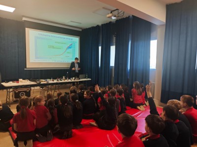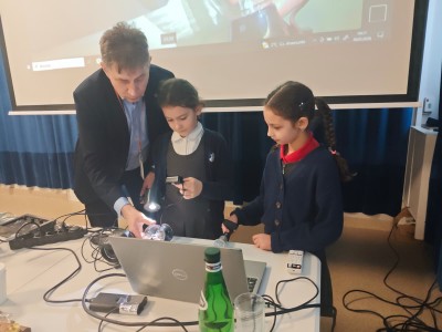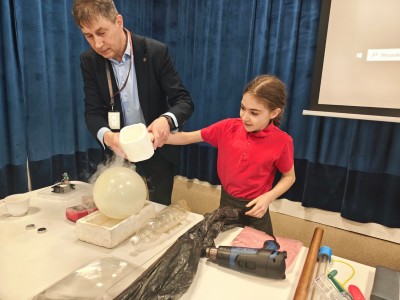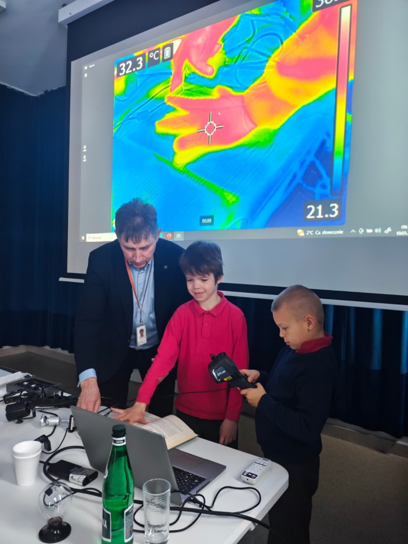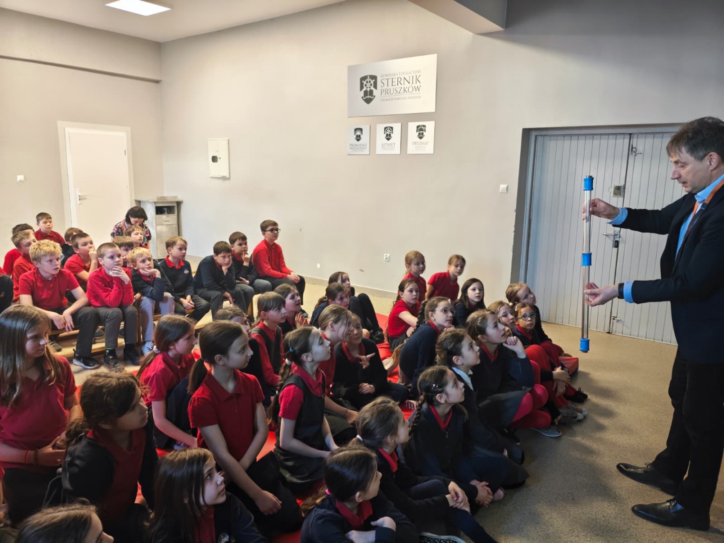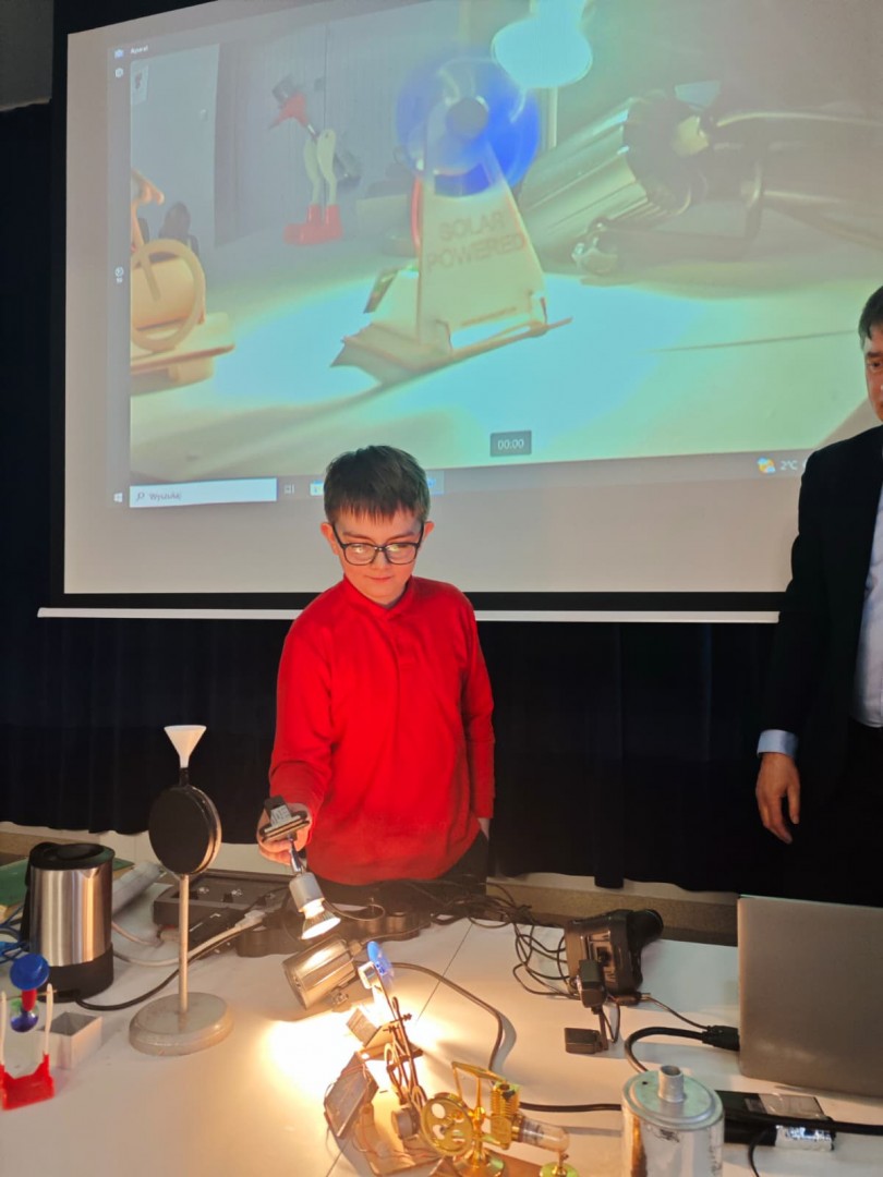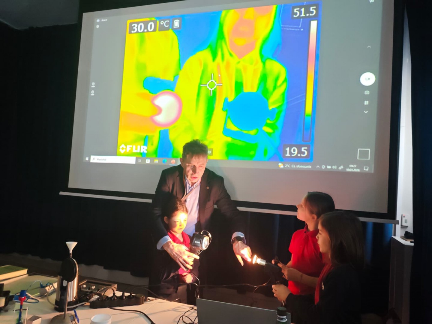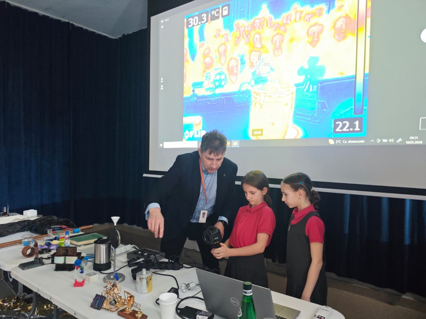 Uczniowie klas 3 oraz dziewczynki realizujące projekt w ramach Przyrodniczego Koła Naukowego mieli okazję uczestniczyć w widowiskowym wykładzie profesora Andrzeja Wysmołka - fizyka i wykładowcy Wydziału Fizyki UW.