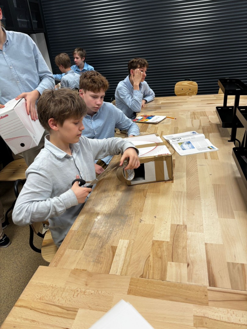 Każda grupa musiała tak przygotować pudełko, aby do środka wpadało światło przez niewielki otwór, a na półprzezroczystej kalce pojawił się odwrócony obraz otoczenia. Brzmi prosto, ale wymagało to precyzji, cierpliwości i odrobiny kreatywności.