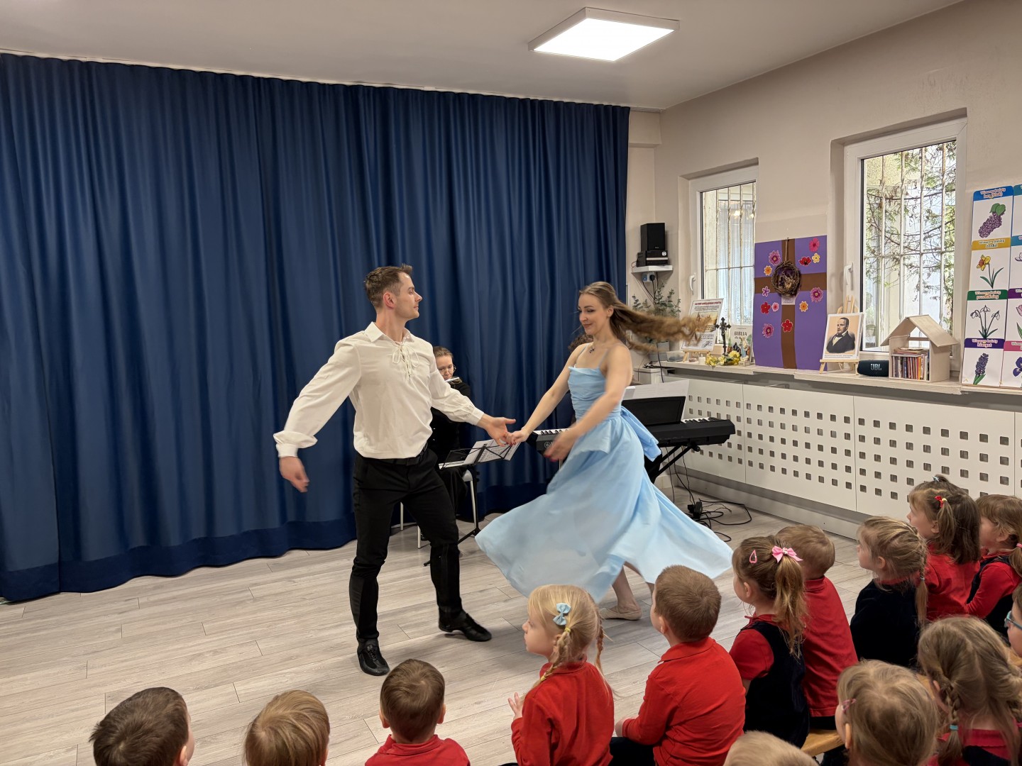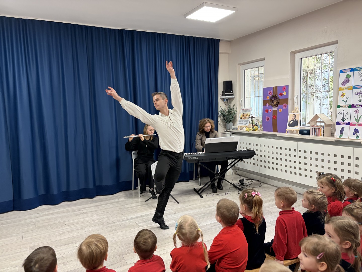 W naszym przedszkolu odbyło się wyjątkowe spotkanie muzyczne, podczas którego dzieci miały okazję poznać świat muzyki klasycznej i baletu. Gościliśmy artystów, którzy zaprezentowali utwory kompozytora Piotra Czajkowskiego.