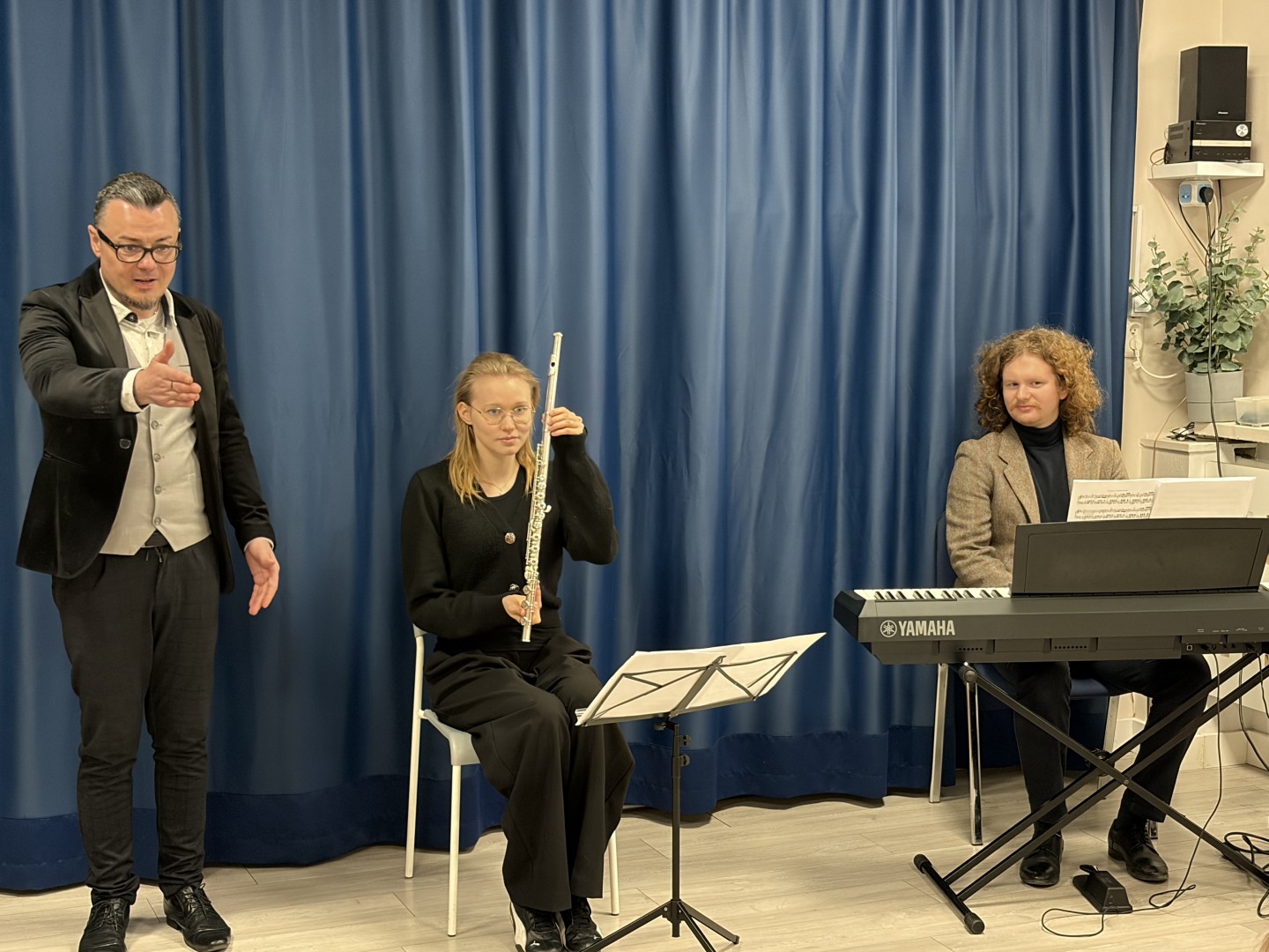 Podczas zajęć dzieci słuchały muzyki wykonywanej na pianinie elektronicznym oraz flecie poprzecznym. Na początku dzieci wysłuchały walca zagranego na pianinie elektronicznym. Następnie pani Klara zaprezentowała grę na flecie poprzecznym przy akompaniamencie pianina w utworze „Skowronek”. W trakcie spotkania dzieci poznały także ciekawostki z życia kompozytora, dowiedziały się, że Piotr Czajkowski w młodości chciał zostać żołnierzem oraz bardzo lubił podróżować. Podczas zajęć zaprezentowano również utwór „Mały jeździec”, który został wykonany na pianinie. Dzieci miały okazję wysłuchać fragmentów muzyki z baletu „Jezioro łabędzie”, w tym „Tańca małych łabędzi” w wykonaniu na pianinie i flecie. Artyści zaprezentowali także utwór nawiązujący do podróży kompozytora do Włoch, pieśń zapraszającą do Neapolu. W dalszej części spotkania dzieci poznały muzykę z baletu „Śpiąca Królewna”, który powstał na podstawie znanej baśni. Na zakończenie zaprezentowane zostały fragmenty baletu „Dziadek do orzechów”, takie jak „Taniec rosyjski – Trepak”, „Taniec Wróżki Cukrowej” oraz „Taniec kwiatów”. Spotkanie było dla dzieci niezwykłą okazją do bezpośredniego kontaktu z muzyką klasyczną, poznania nowych instrumentów oraz rozwijania wrażliwości muzycznej i wyobraźni.