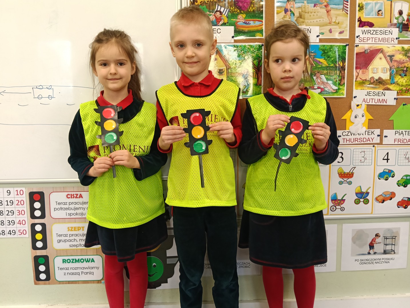 Podczas zajęć dzieci z grupy Zajączków zapoznały się z podstawowymi znakami drogowymi oraz ich znaczeniem. Utrwaliły zasady bezpiecznego poruszania się po chodniku i drodze – wiedzą już, że należy iść spokojnie, trzymać się blisko dorosłego oraz zawsze zachowywać ostrożność.