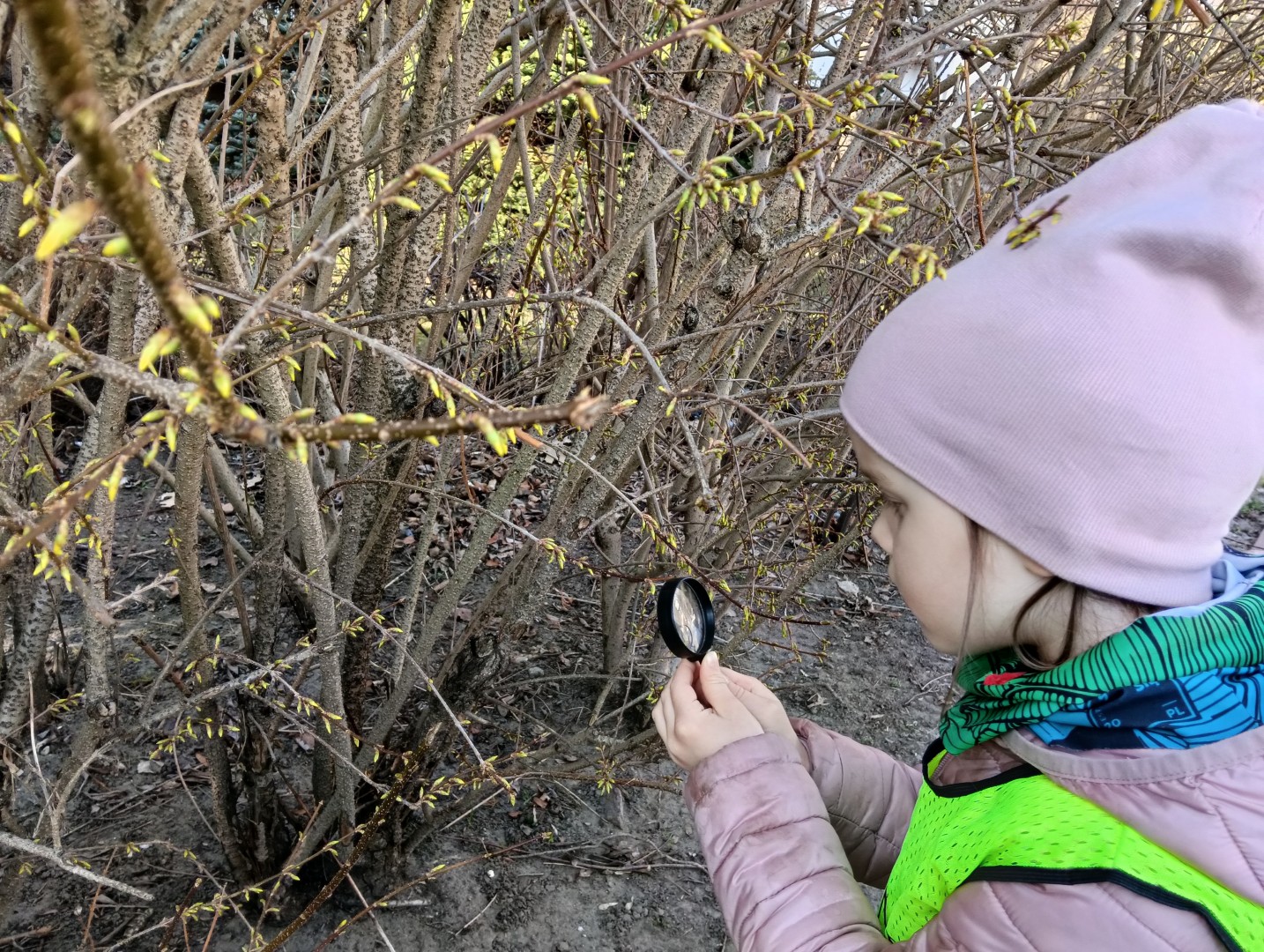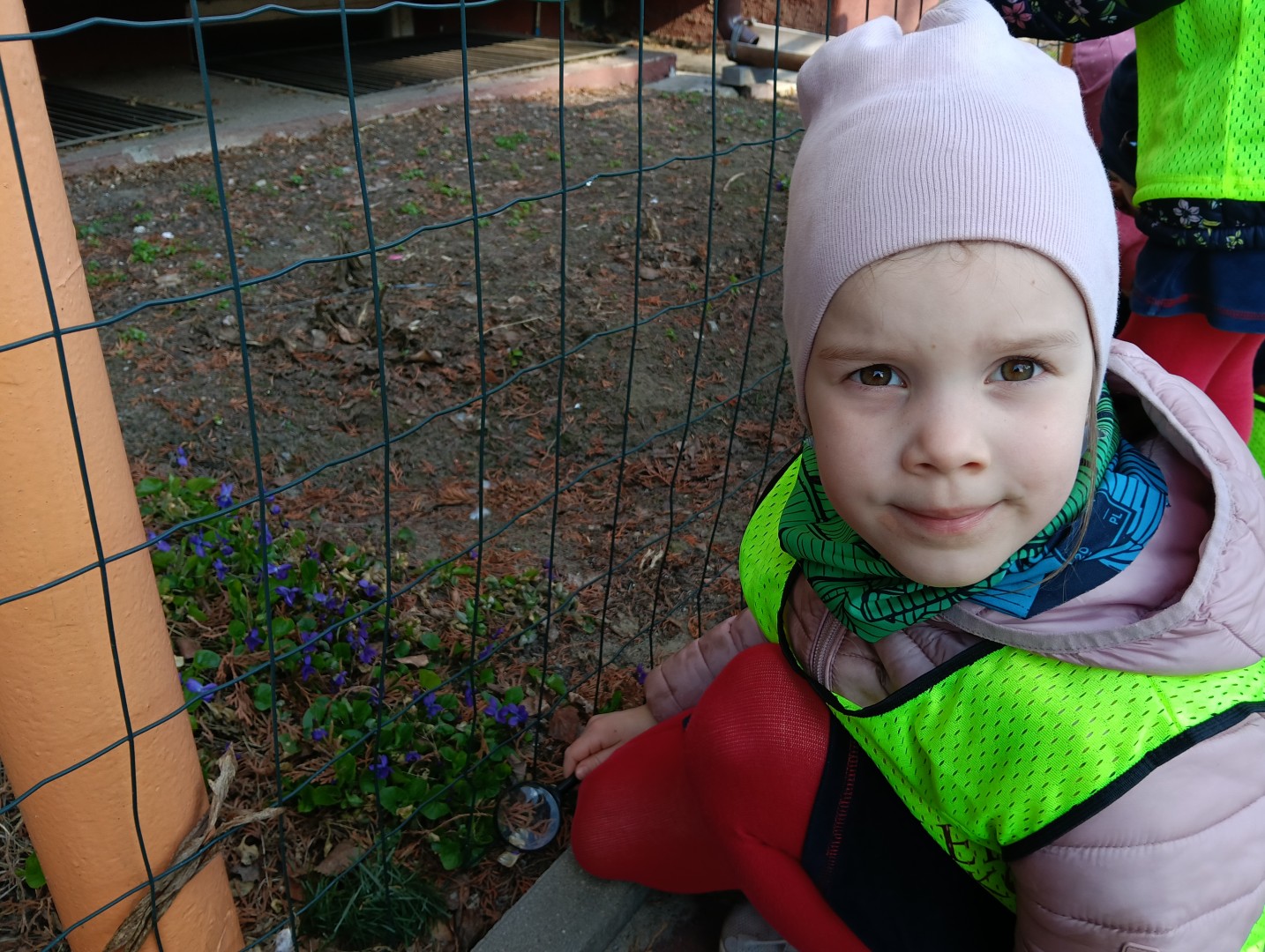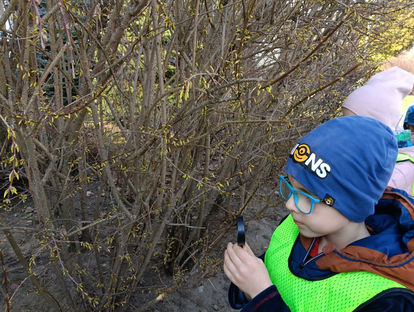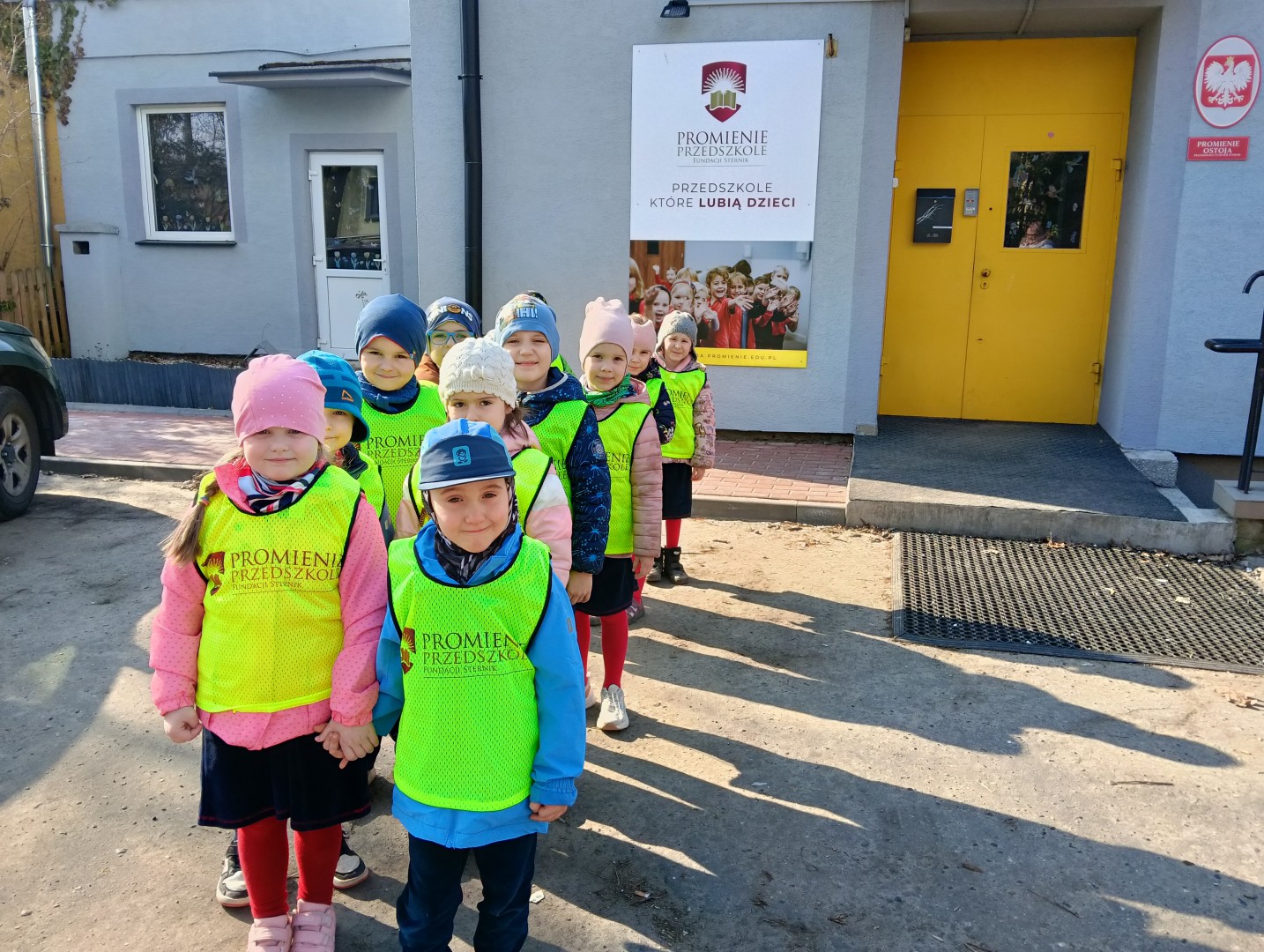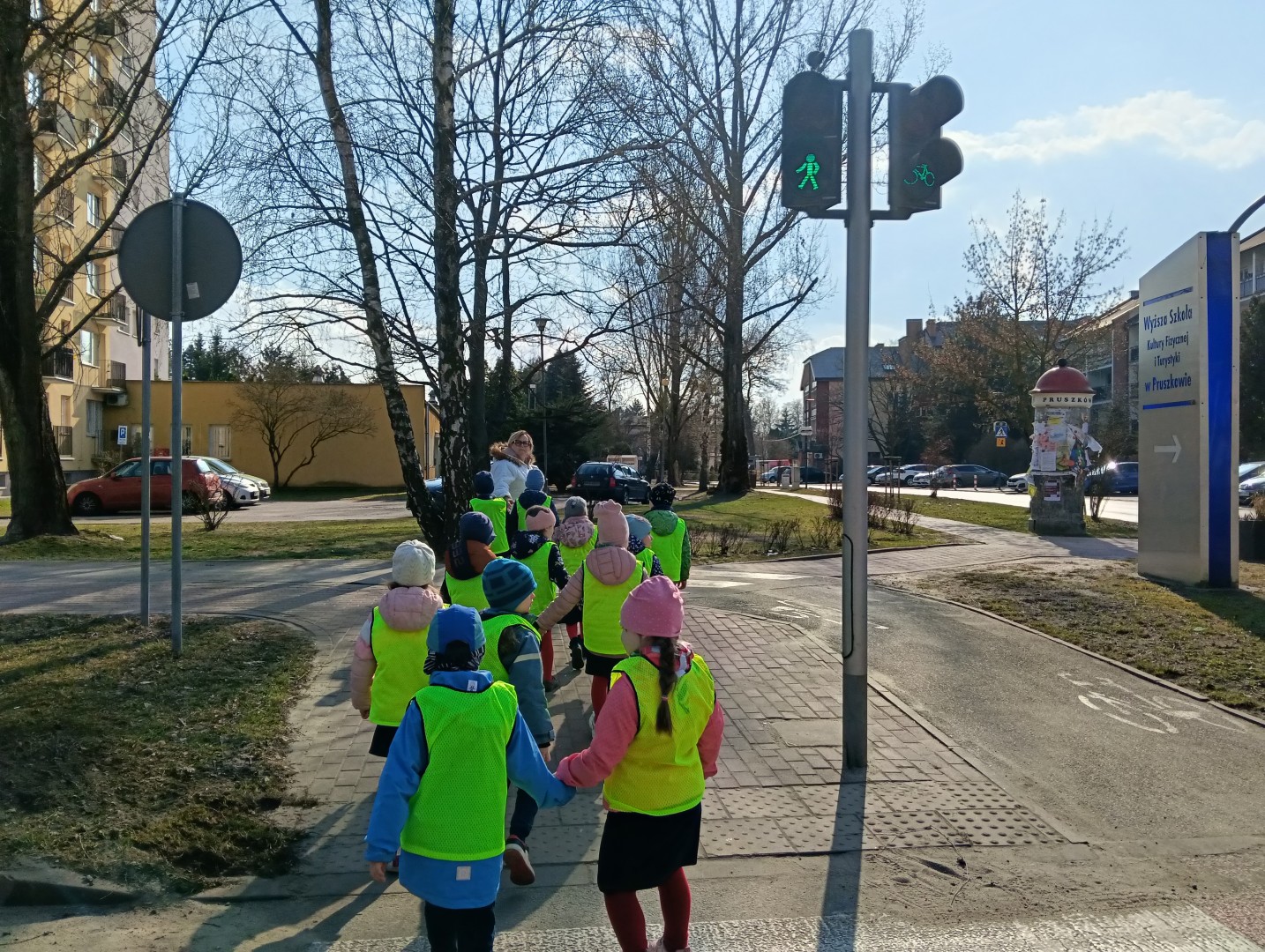 W ramach zajęć odbył się spacer, podczas którego dzieci miały na sobie kamizelki odblaskowe, dzięki czemu mogły w praktyce zastosować poznane zasady i zadbać o swoje bezpieczeństwo na drodze. Dodatkowo, podczas spaceru dzieci poszukiwały oznak wiosny, obserwując przyrodę przez lupy, co sprawiło im dużo radości i pozwoliło rozwijać ciekawość poznawczą.