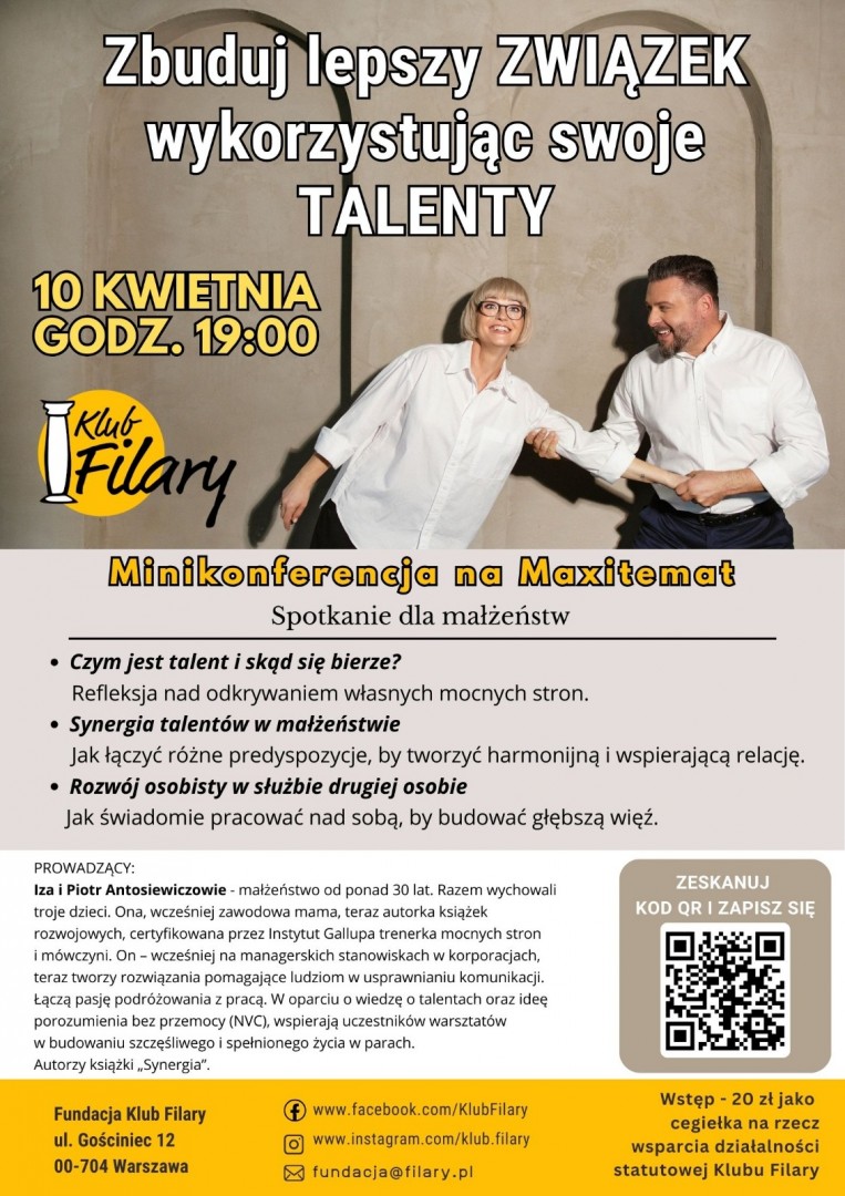Spotkanie jest zaproszeniem do zatrzymania się, spojrzenia na siebie i na relację z nowej perspektywy oraz odkrycia, jak talenty mogą stać się fundamentem silniejszego, bardziej świadomego małżeństwa.
