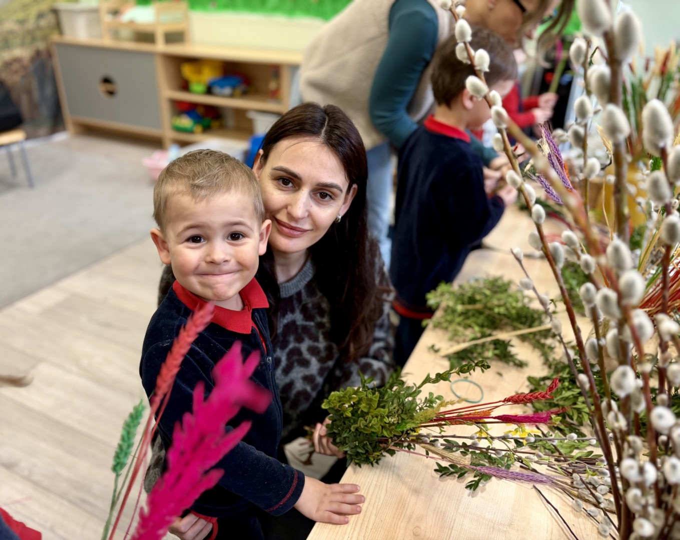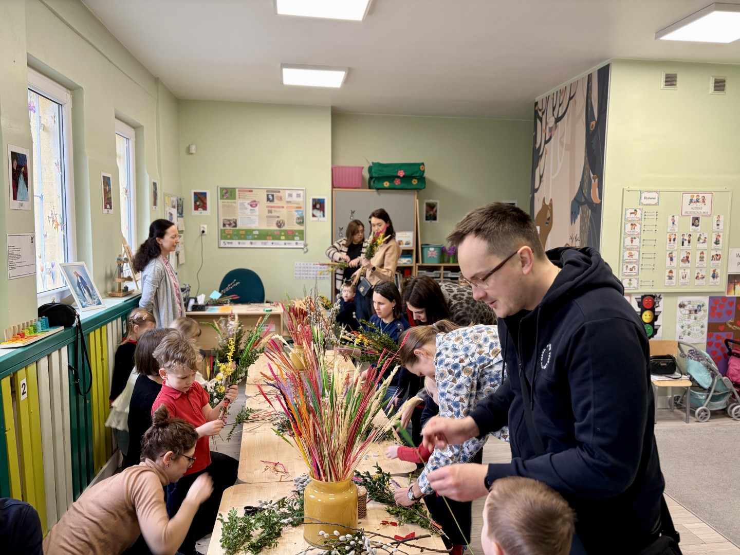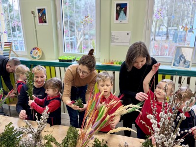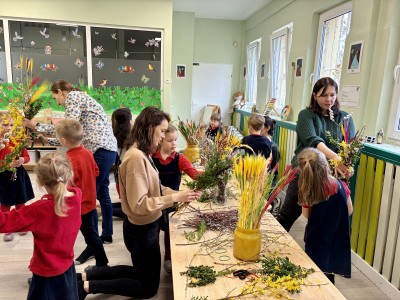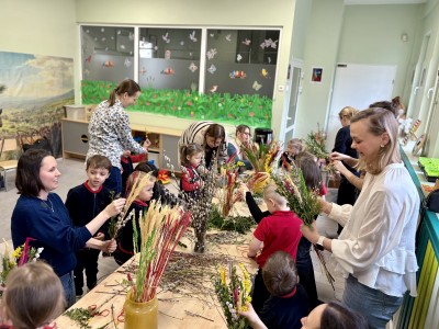 W naszym przedszkolu odbyły się wyjątkowe spotkanie, podczas którego dzieci wspólnie z rodzicami tworzyły tradycyjne palmy wielkanocne. Był to wspaniały czas spędzony na wspólnej pracy, twórczości i budowaniu świątecznej atmosfery.