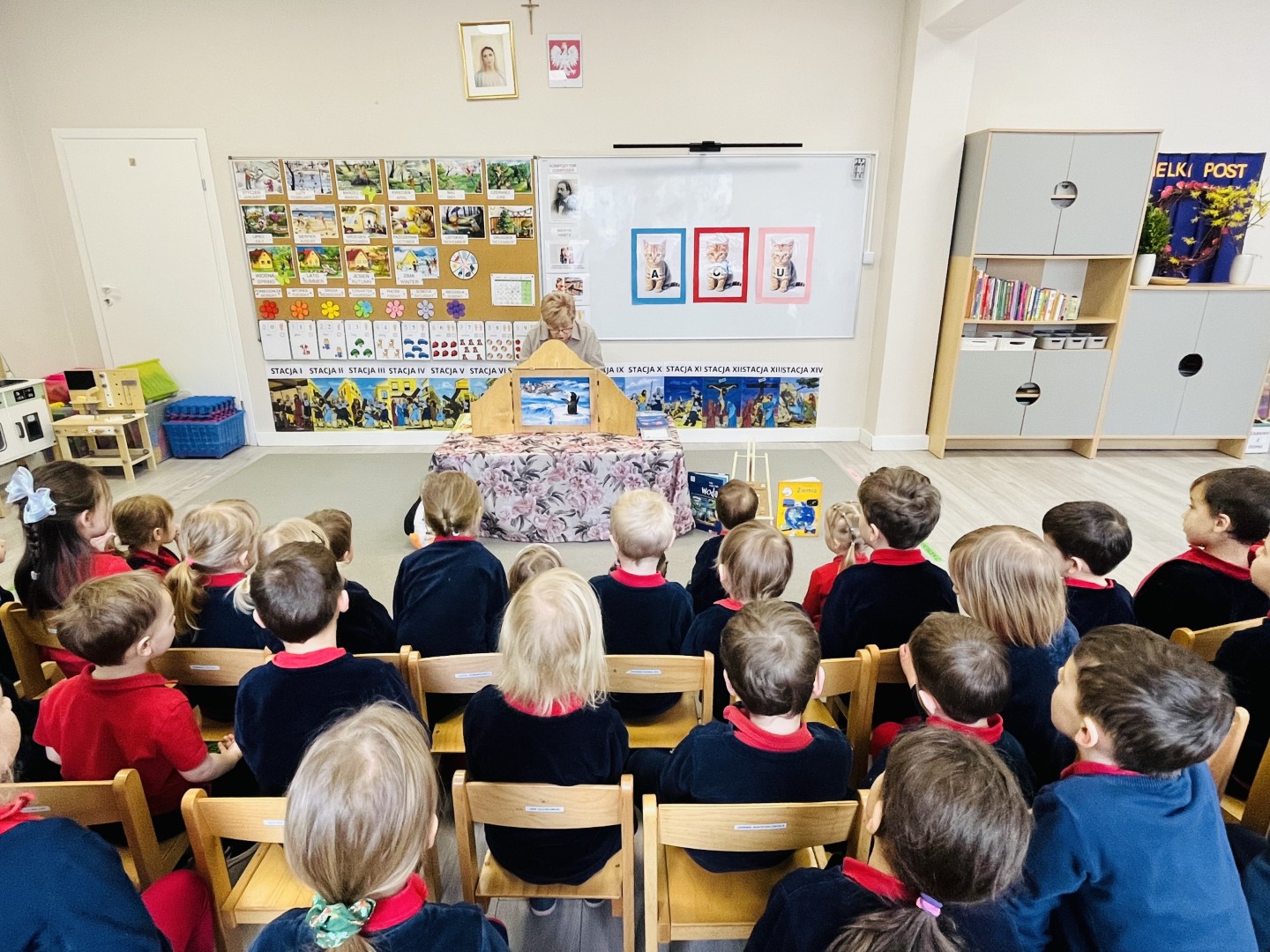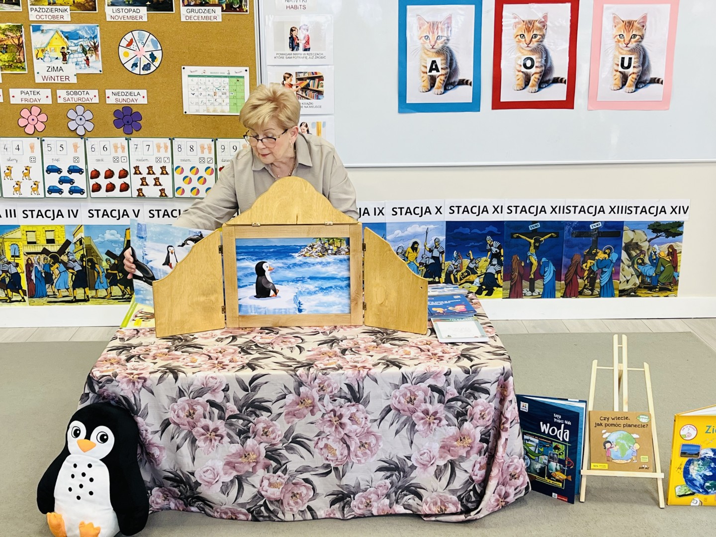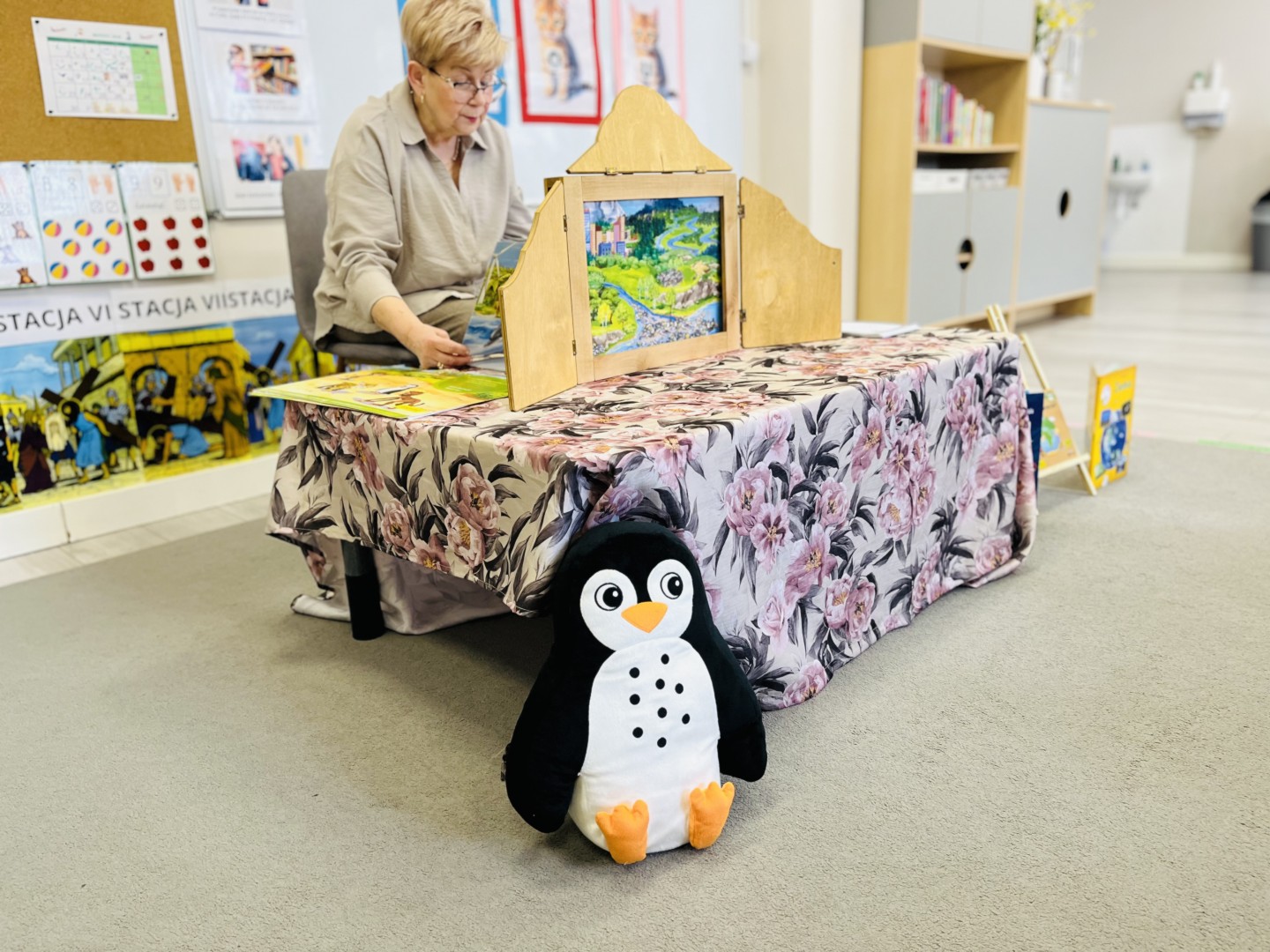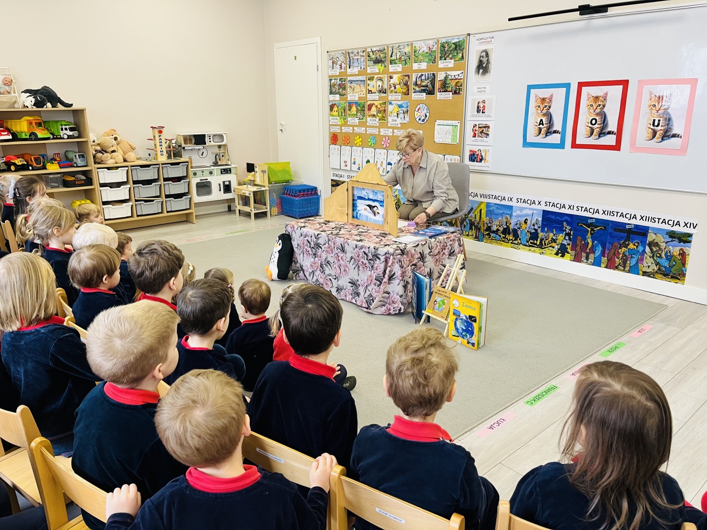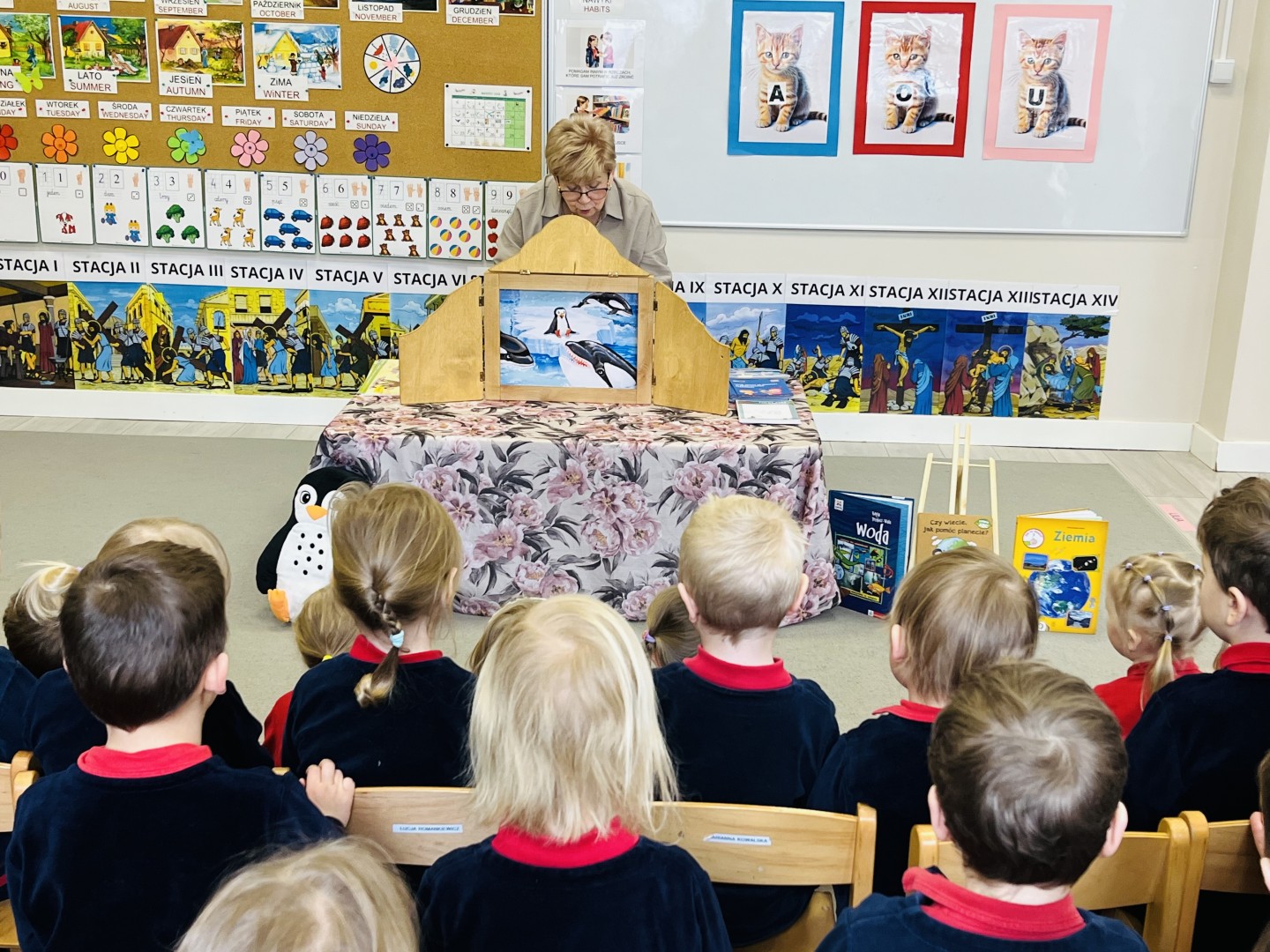 Przedszkolaki z ogromnym zaciekawieniem słuchały historii o pingwinku i z wielkim zaangażowaniem śledziły przebieg opowieści.