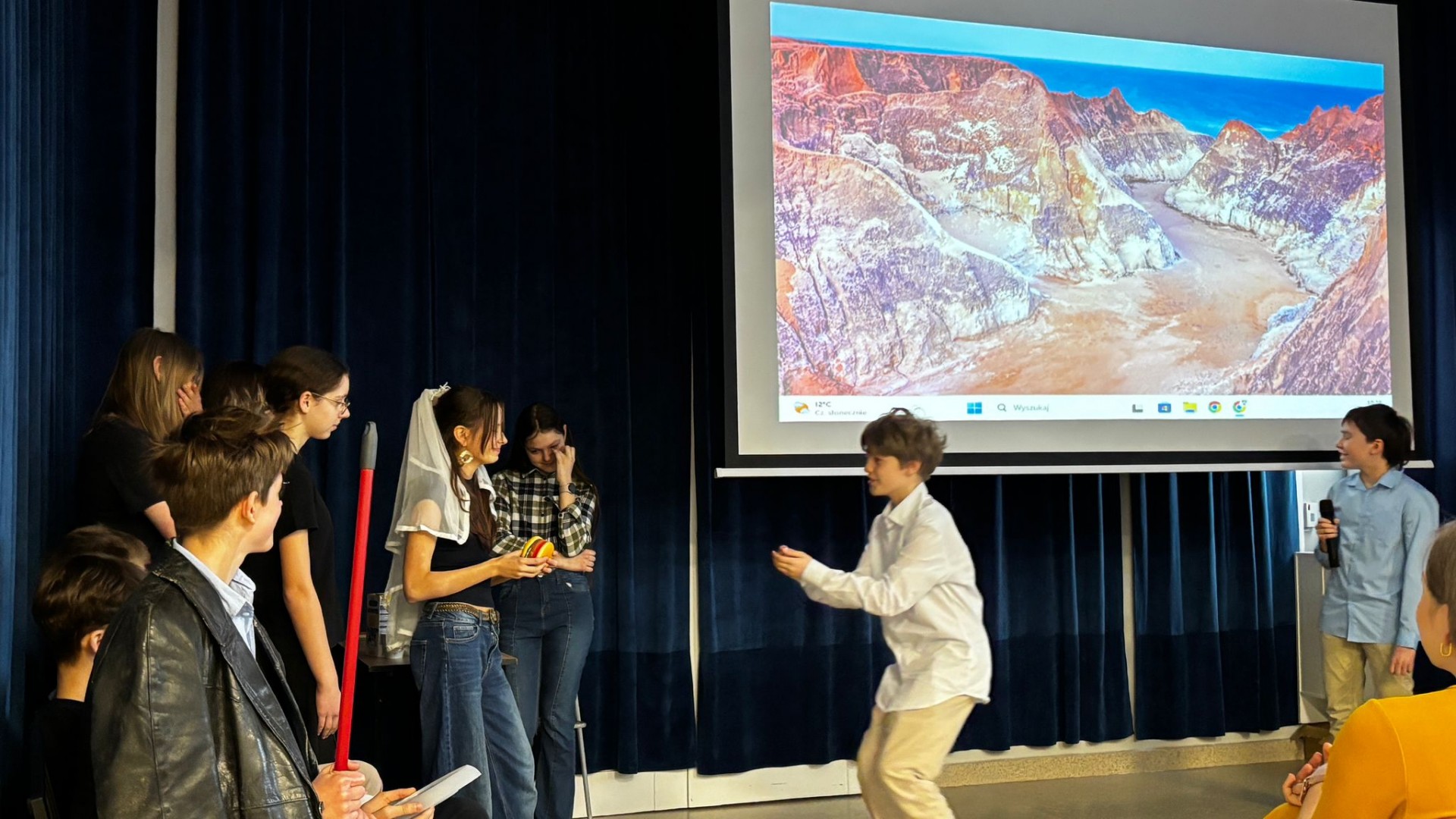 Dziękujemy szanownemu Jury za podjęcie wyzwania (a nie jest łatwo obiektywnie porównać występ klasy 4 i 7), p. Oskarowi Krzywonosowi za wsparcie techniczne podczas występów i p. Karolowi Jabłońskiemu za fotorelację - my nie mieliśmy do tego głowy - trzymaliśmy kciuki za występy, pilnowaliśmy skryptów i byliśmy gotowi w razie potrzeby suflerować - przyznajemy się, każdy z nas miał swojego faworyta :)