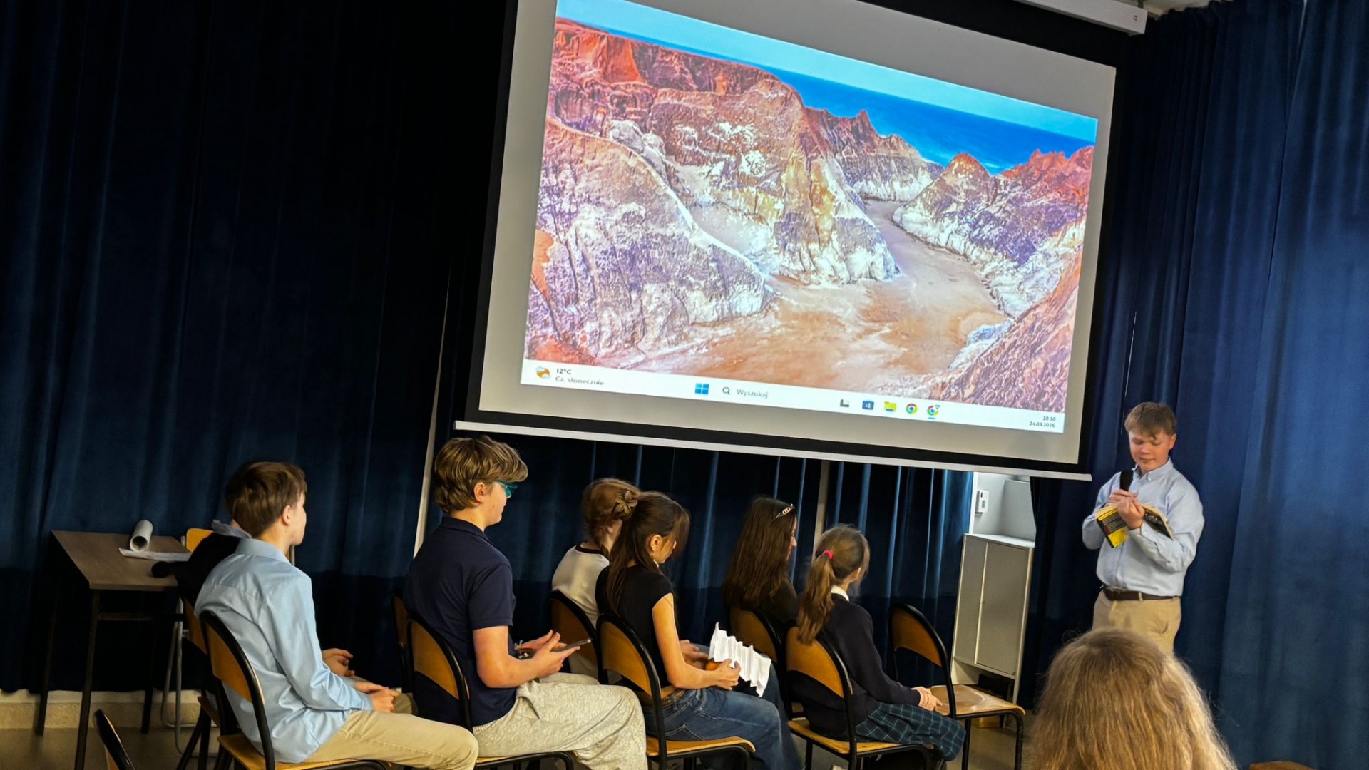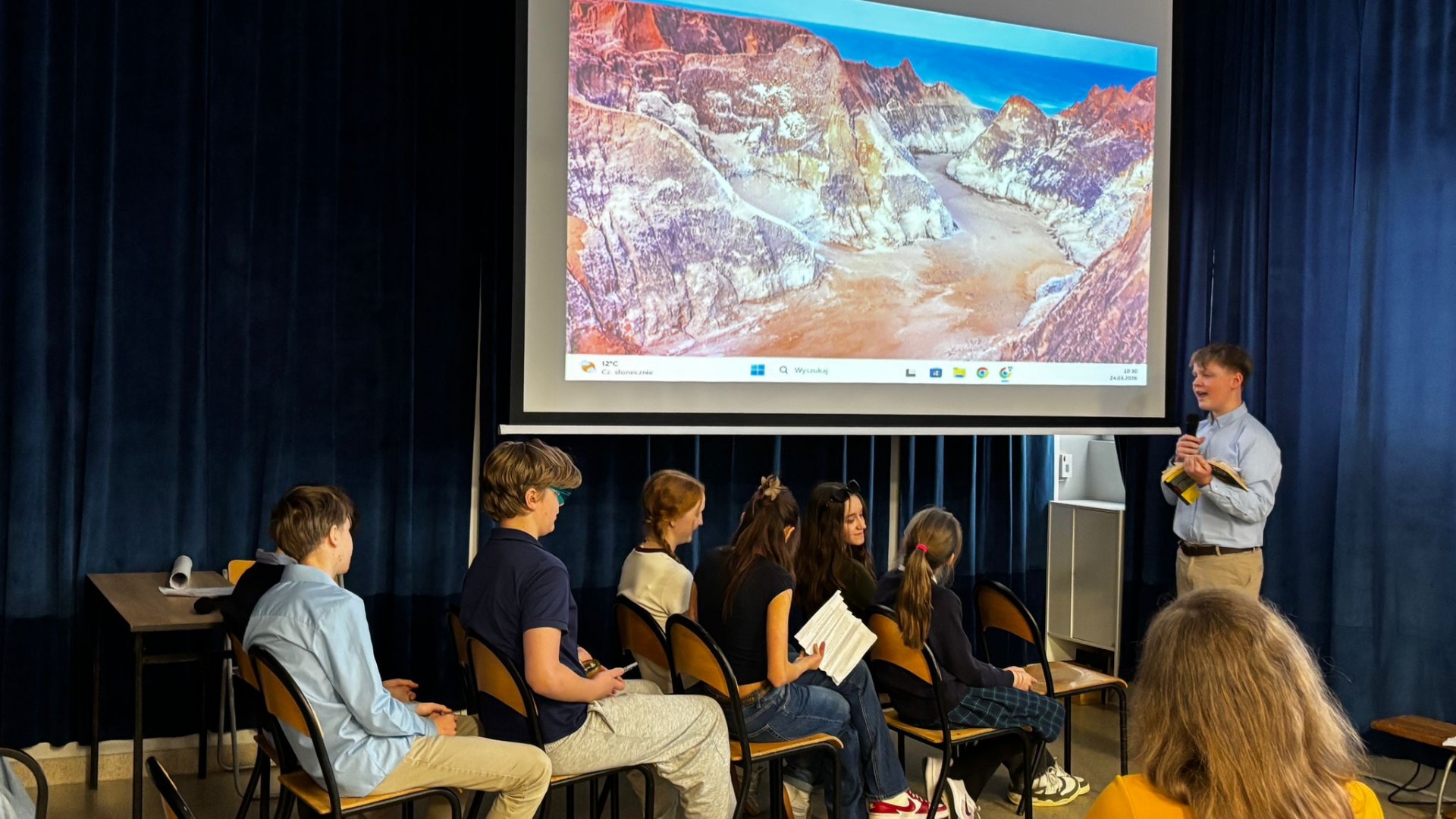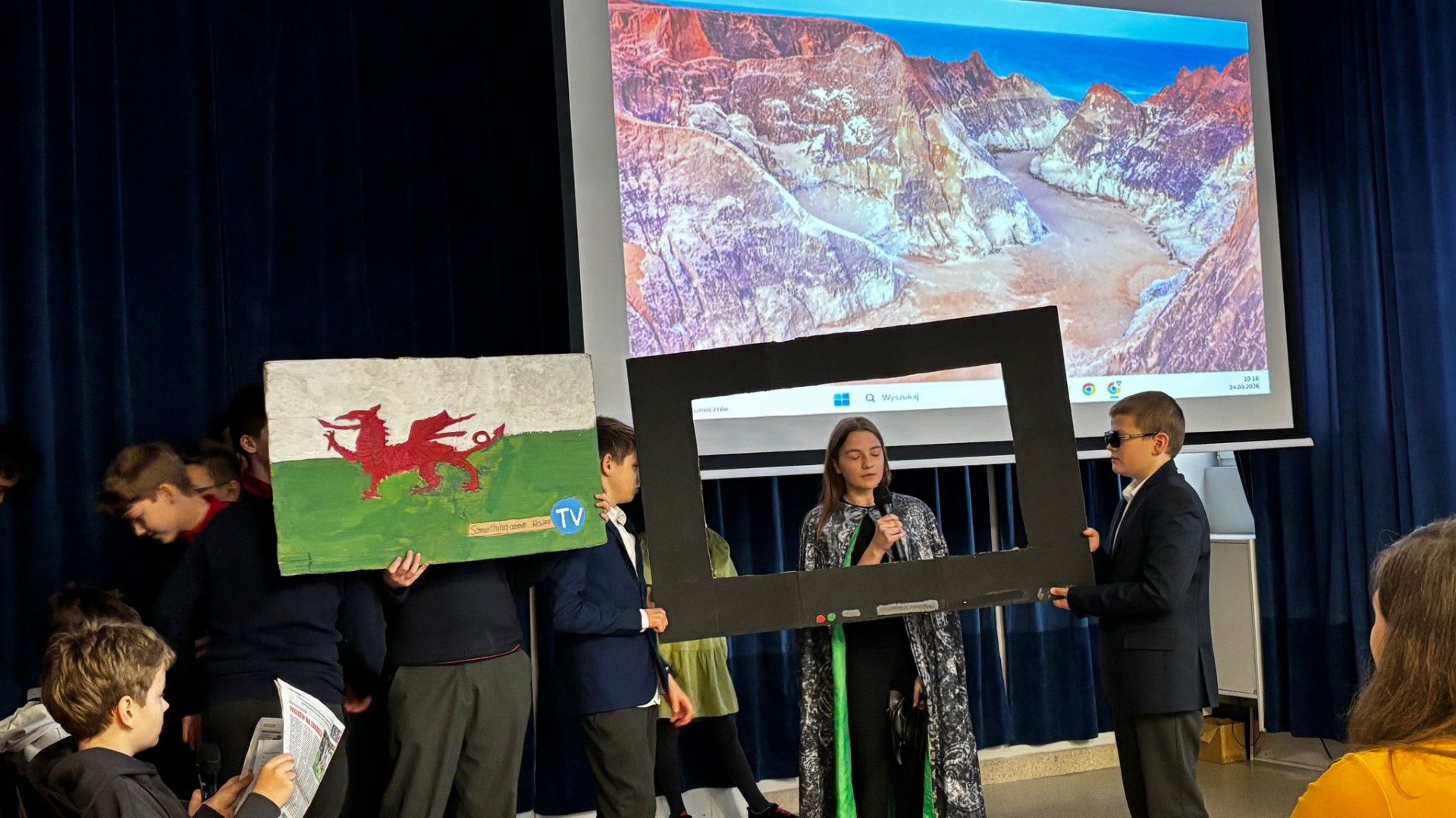 Uczniowie prezentowali fakty i ciekawostki dotyczące poszczególnych krain, a także odgrywali scenki związane z ich legendami, folklorem, historią i kulturą, zaś trudu wyłonienia zwycięzcy podjęło się niezależne jury - p. Karina Wiącek, p. Katarzyna Napierkowska i p. Sebastian Kamiński.