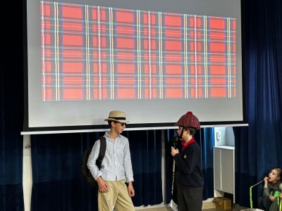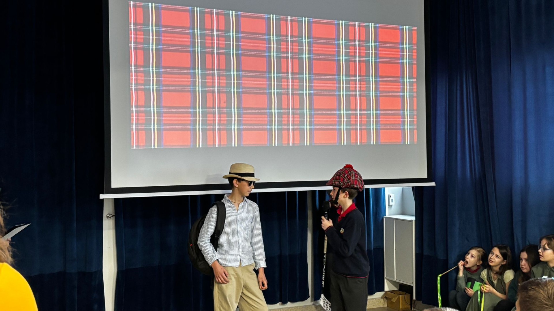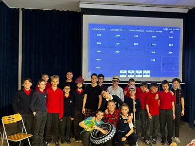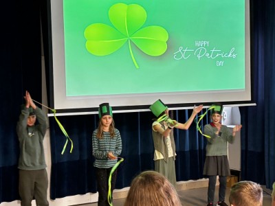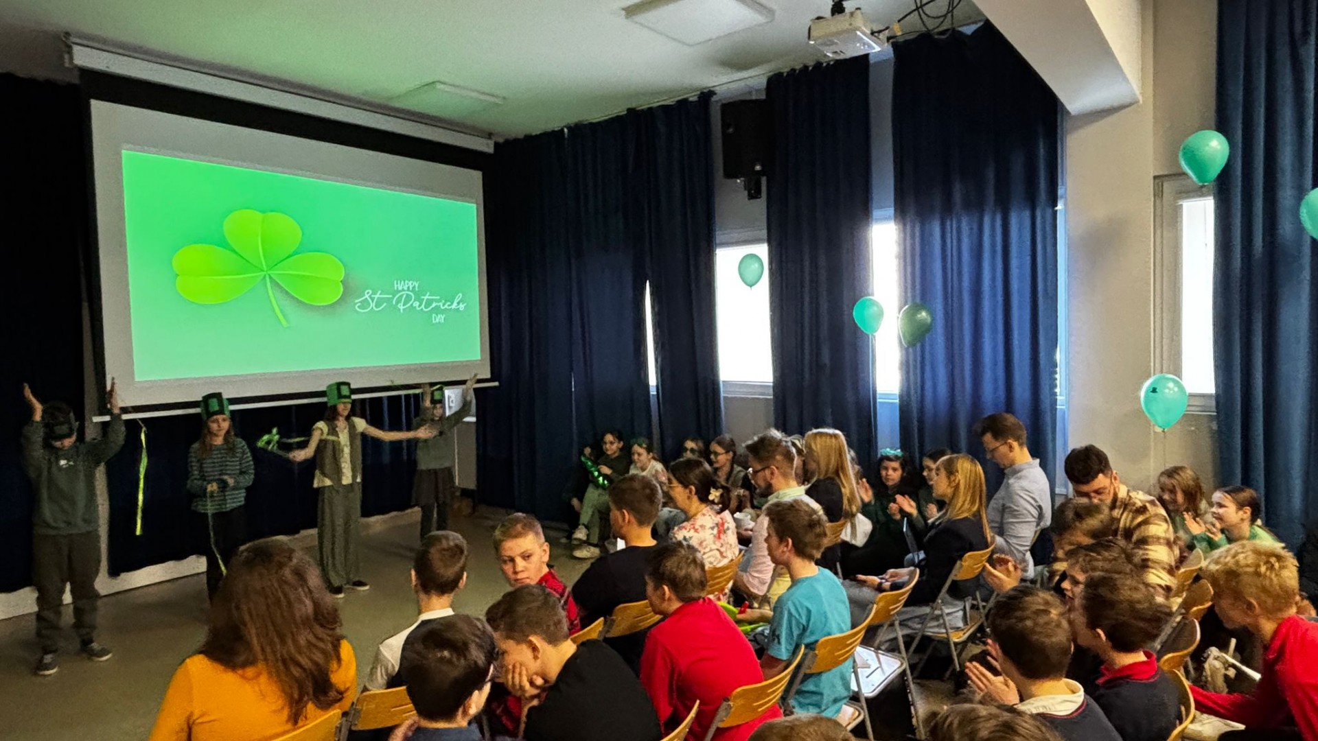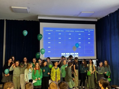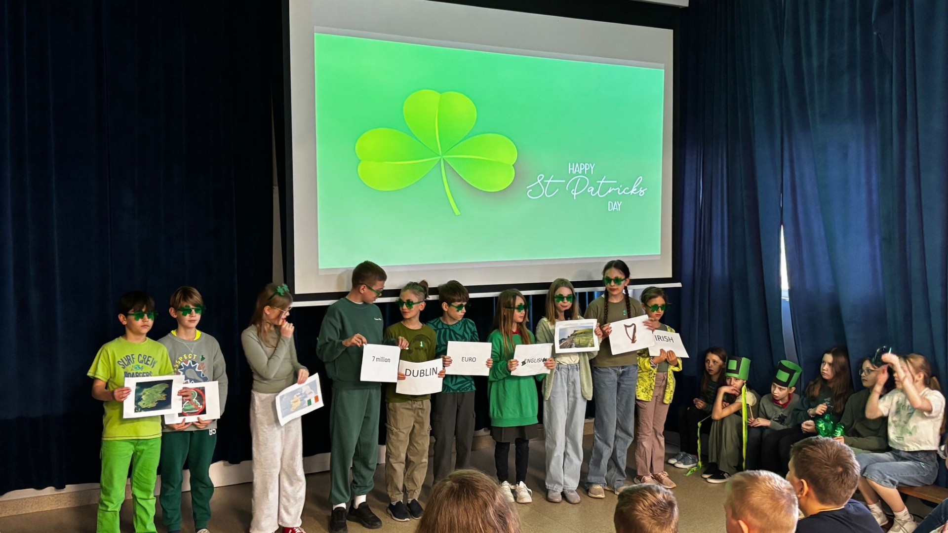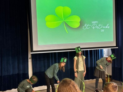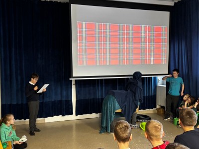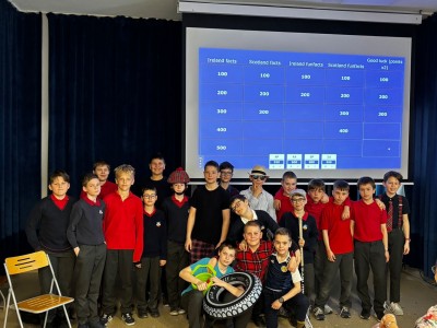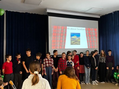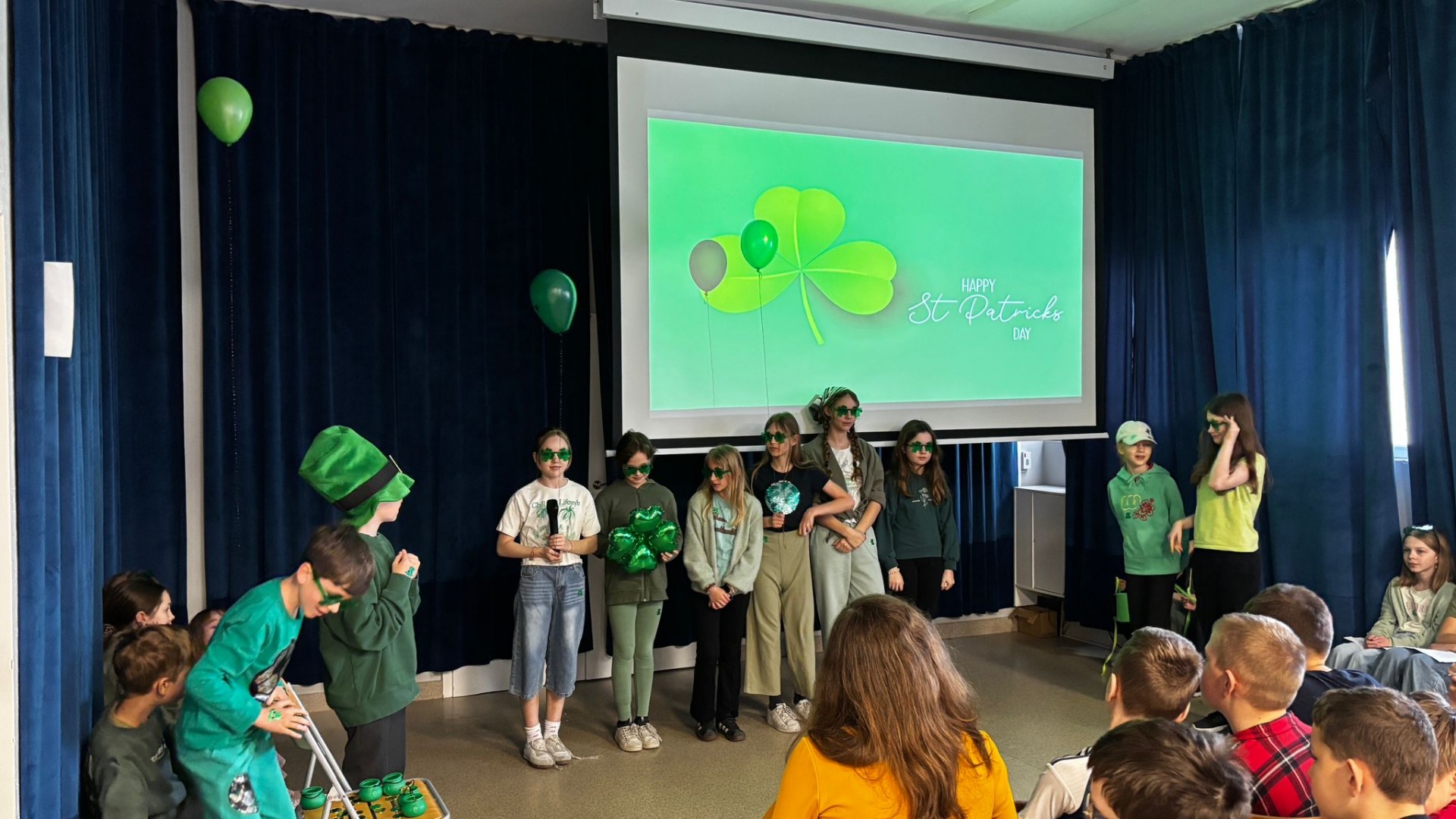 Najpierw zaprezentowały się klasy 4 i 5. Irlandzka zieleń i leprechauny zmierzyły się ze szkocką kratą i dudami. Było kolorowo, wesoło i głośno od charakterystycznych nut muzyki irlandzkiej i szkockiej. Po prezentacjach każda z klas wyłoniła po 2 śmiałków, którzy zmierzyli się w teście wiedzy o Irlandii i Szkocji. Emocje sięgały zenitu, a quiz ostatecznie wygrała klasa 5P.