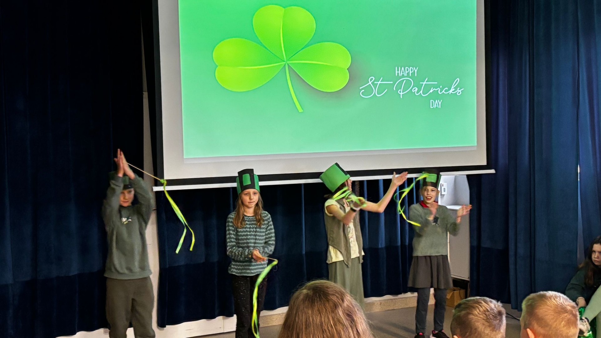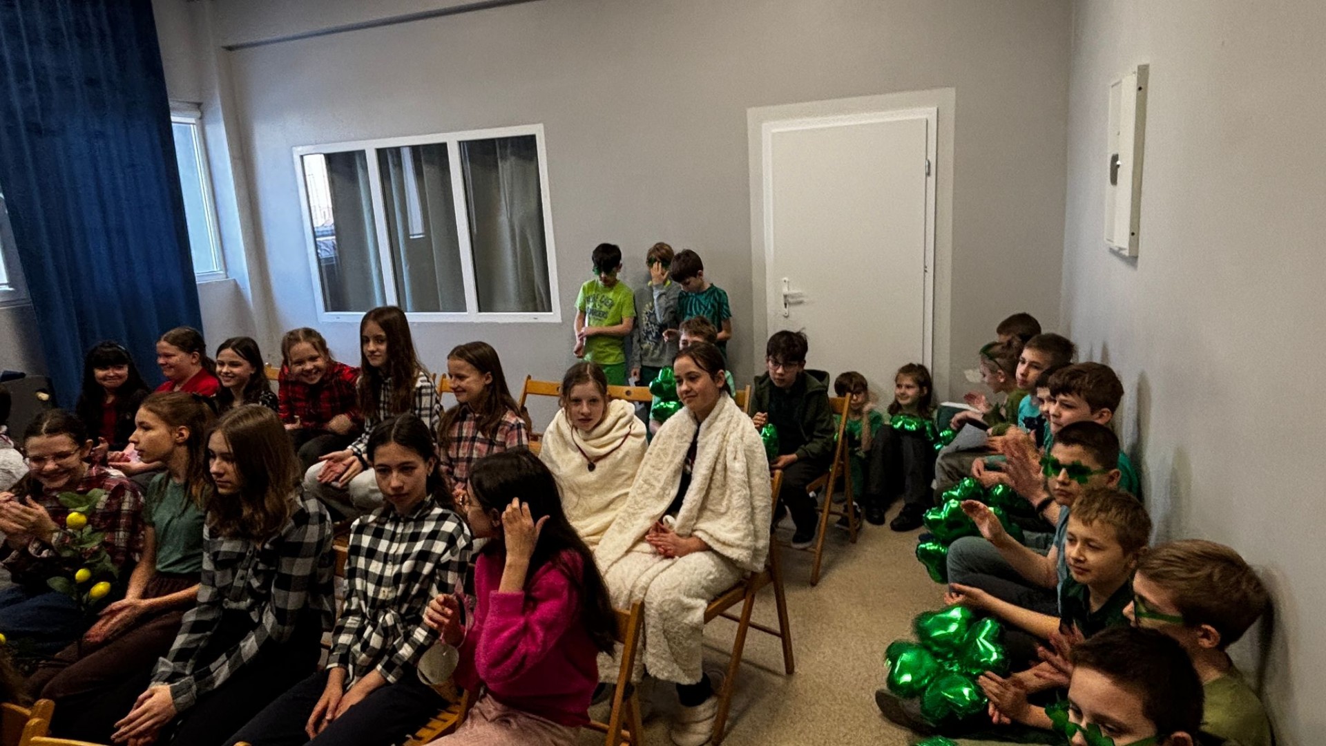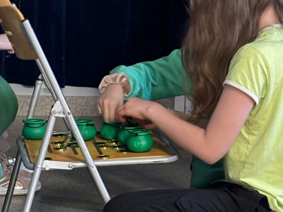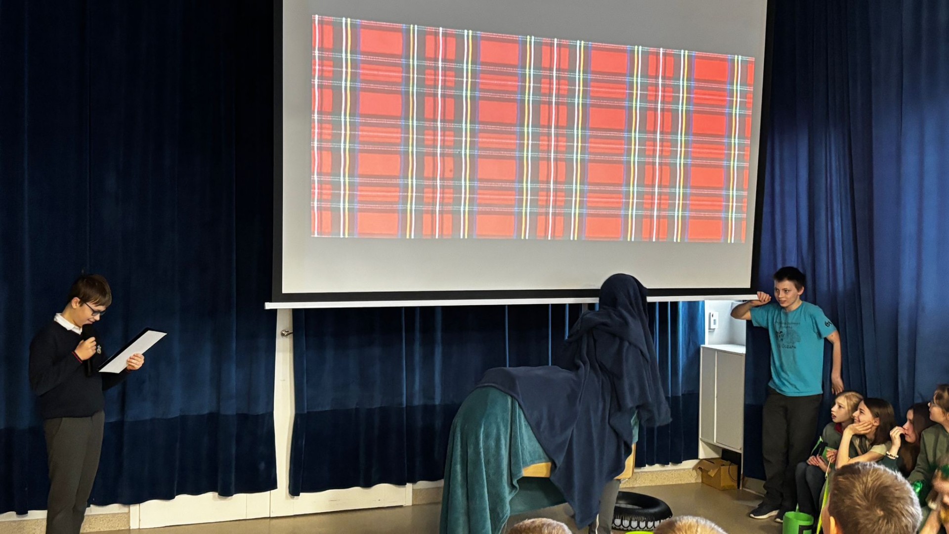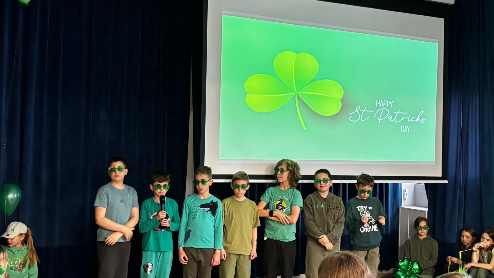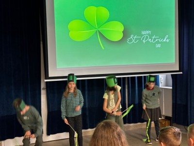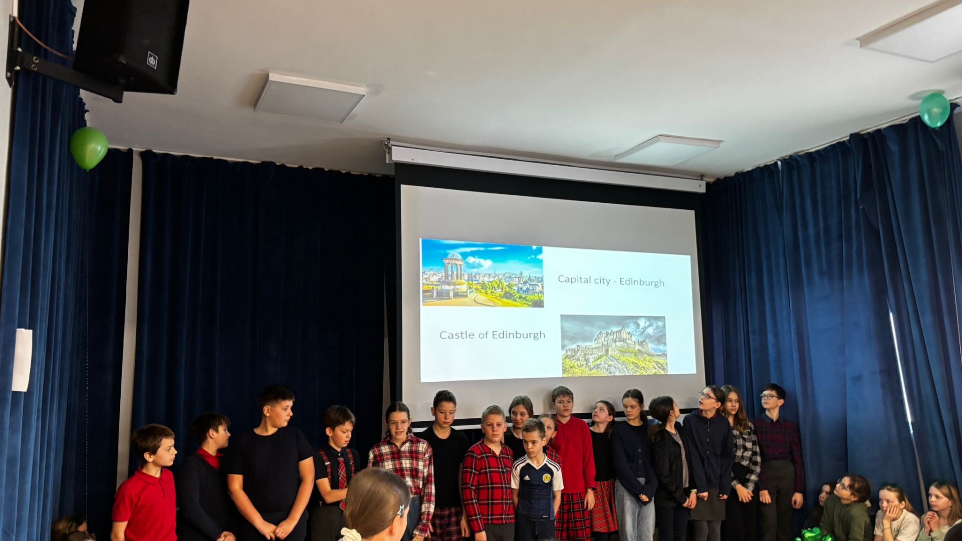 Najpierw zaprezentowały się klasy 4 i 5. Irlandzka zieleń i leprechauny zmierzyły się ze szkocką kratą i dudami. Było kolorowo, wesoło i głośno od charakterystycznych nut muzyki irlandzkiej i szkockiej. Po prezentacjach każda z klas wyłoniła po 2 śmiałków, którzy zmierzyli się w teście wiedzy o Irlandii i Szkocji. Emocje sięgały zenitu, a quiz ostatecznie wygrała klasa 5P.