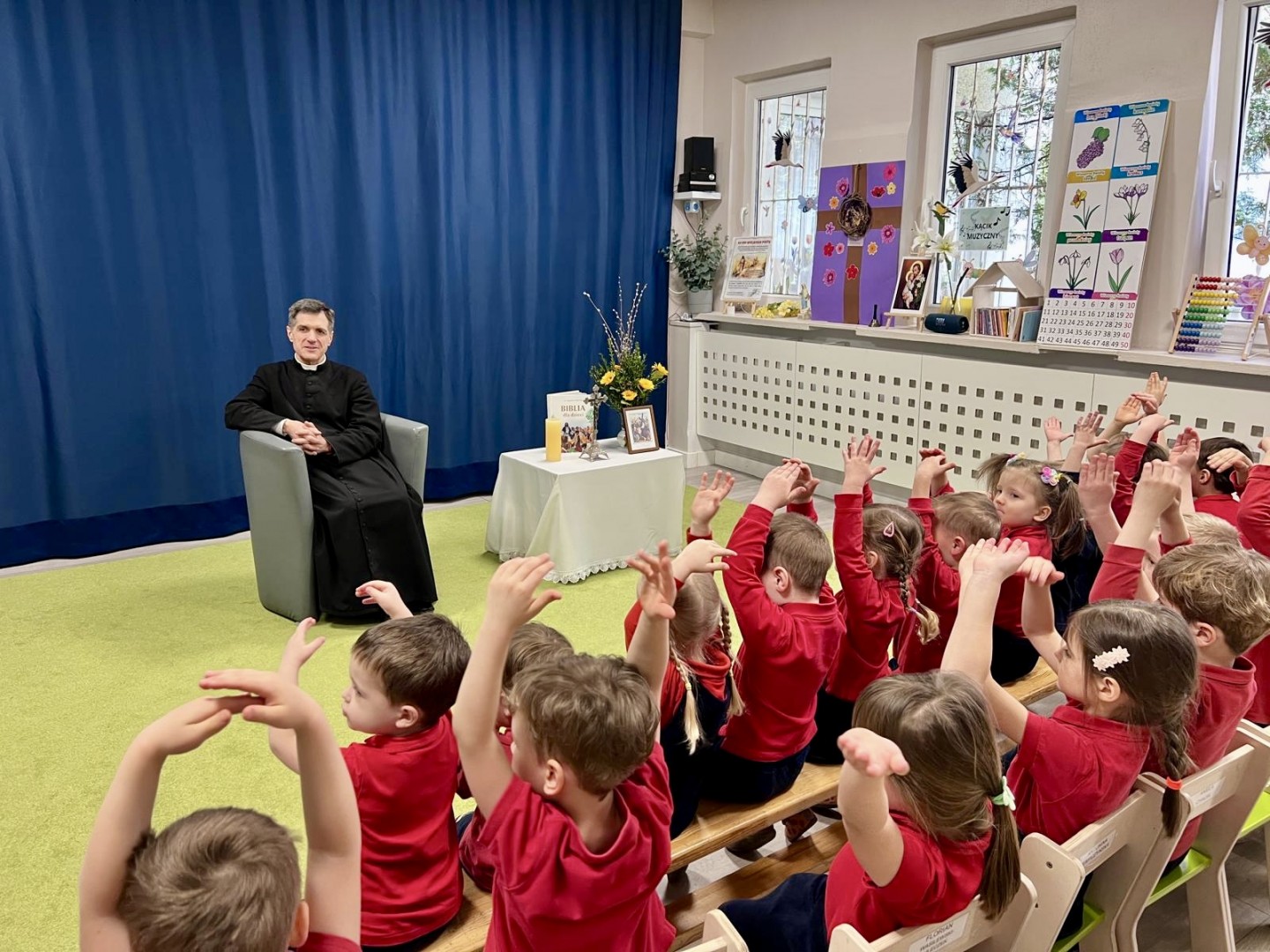 Opowiedział dzieciom, czym jest Wielki Post, dlaczego jest ważny i jakie są z nim związane tradycje. Na koniec wszyscy wspólnie zaśpiewaliśmy piosenkę o Wielkim Poście, która wprowadziła nas w radosny nastrój świąt.