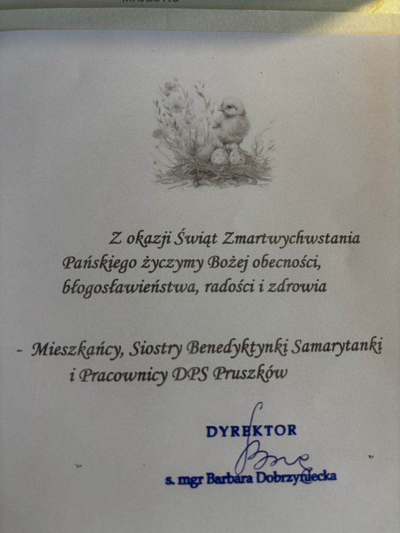 Siostra Benedykta złożyła także wszystkim darczyńcom serdeczne życzenia wielkanocne, życząc pokoju, zdrowia i nadziei płynącej z tajemnicy Zmartwychwstania.