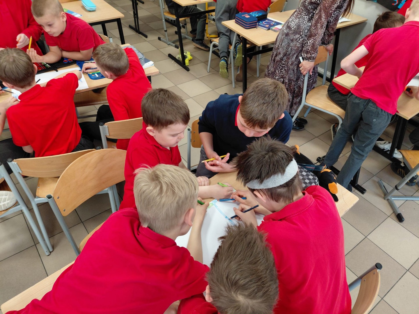 Szczególne zaangażowanie wzbudziły zadania zespołowe, m.in. tworzenie wspólnego rysunku w grupach, gdzie kluczowe było współdziałanie, wzajemne wsparcie i pozytywna komunikacja. Dzięki temu dzieci mogły w praktyce doświadczyć, jak codzienne zachowania wpływają na samopoczucie innych osób.
