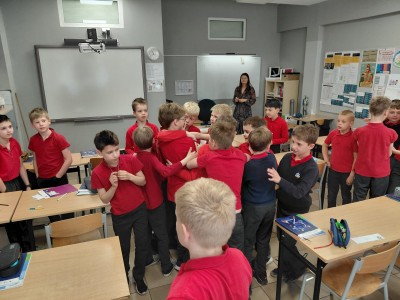 Zajęcia miały na celu wspólne zastanowienie się nad tym, jakie cechy i zachowania sprawiają, że czujemy się dobrze w relacjach z innymi. Uczniowie aktywnie uczestniczyli w ćwiczeniach ruchowych i zabawach integracyjnych, podczas których wskazywali cechy dobrego kolegi, takie jak życzliwość, pomocność czy umiejętność słuchania.