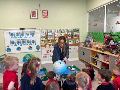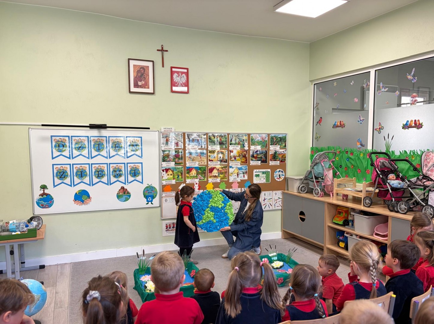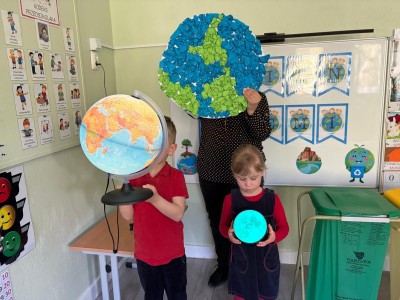 Chętnie dzieliły się swoimi pomysłami na ochronę naszej planety, takimi jak oszczędzanie wody, gaszenie światła czy dbanie o czystość wokół nas. To był dzień pełen radości, nauki i troski o naszą wspólną Ziemię.