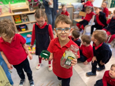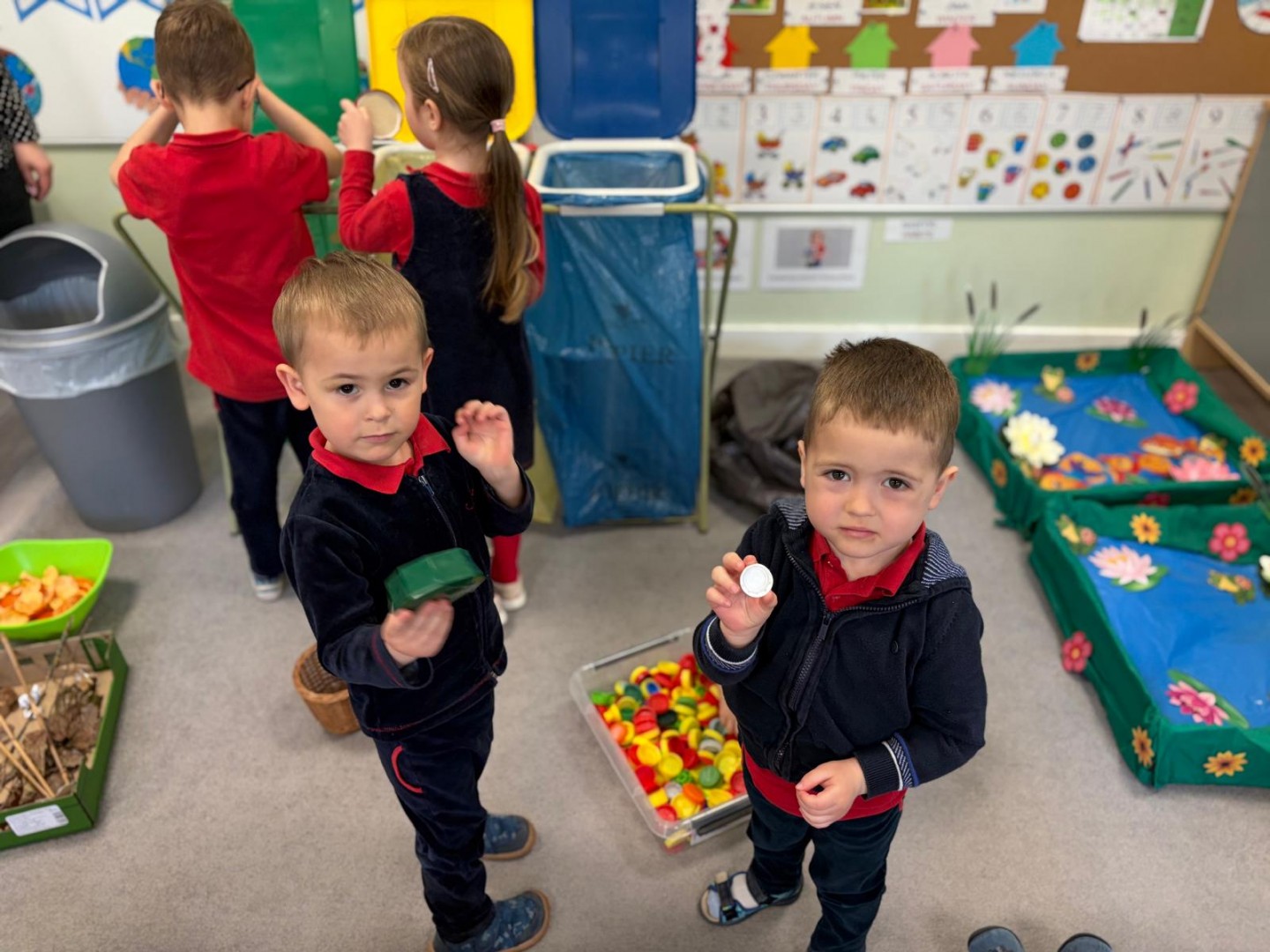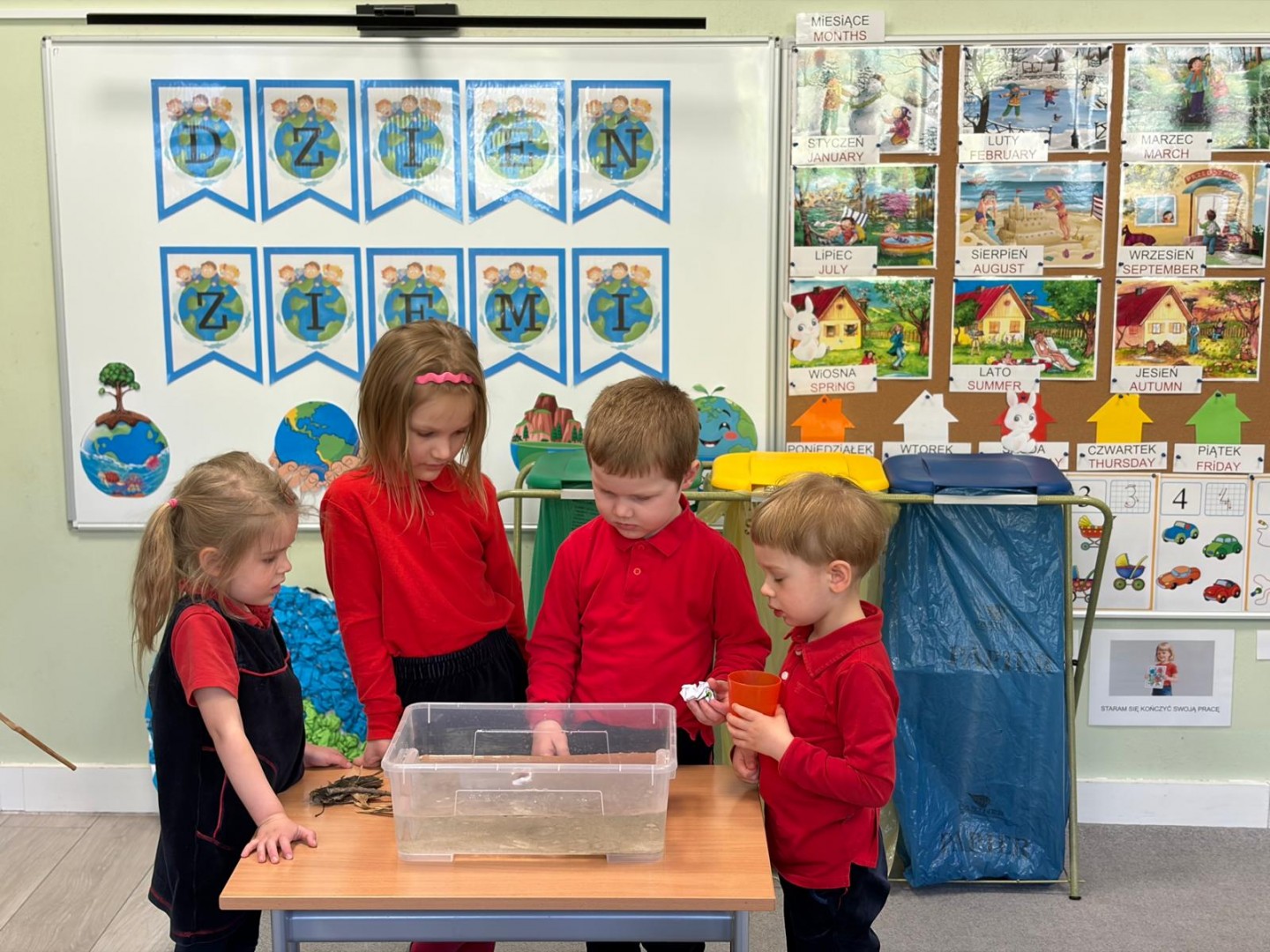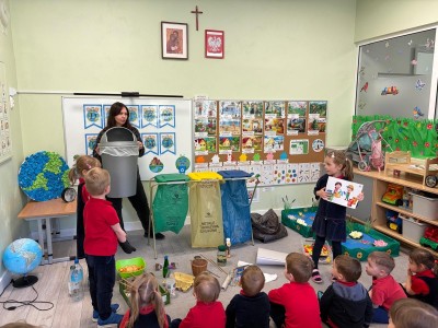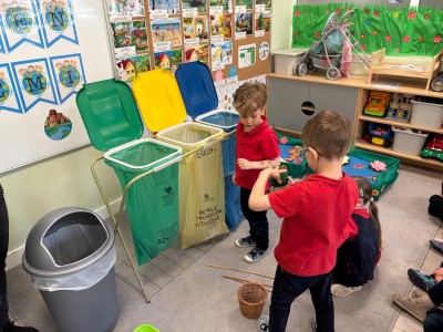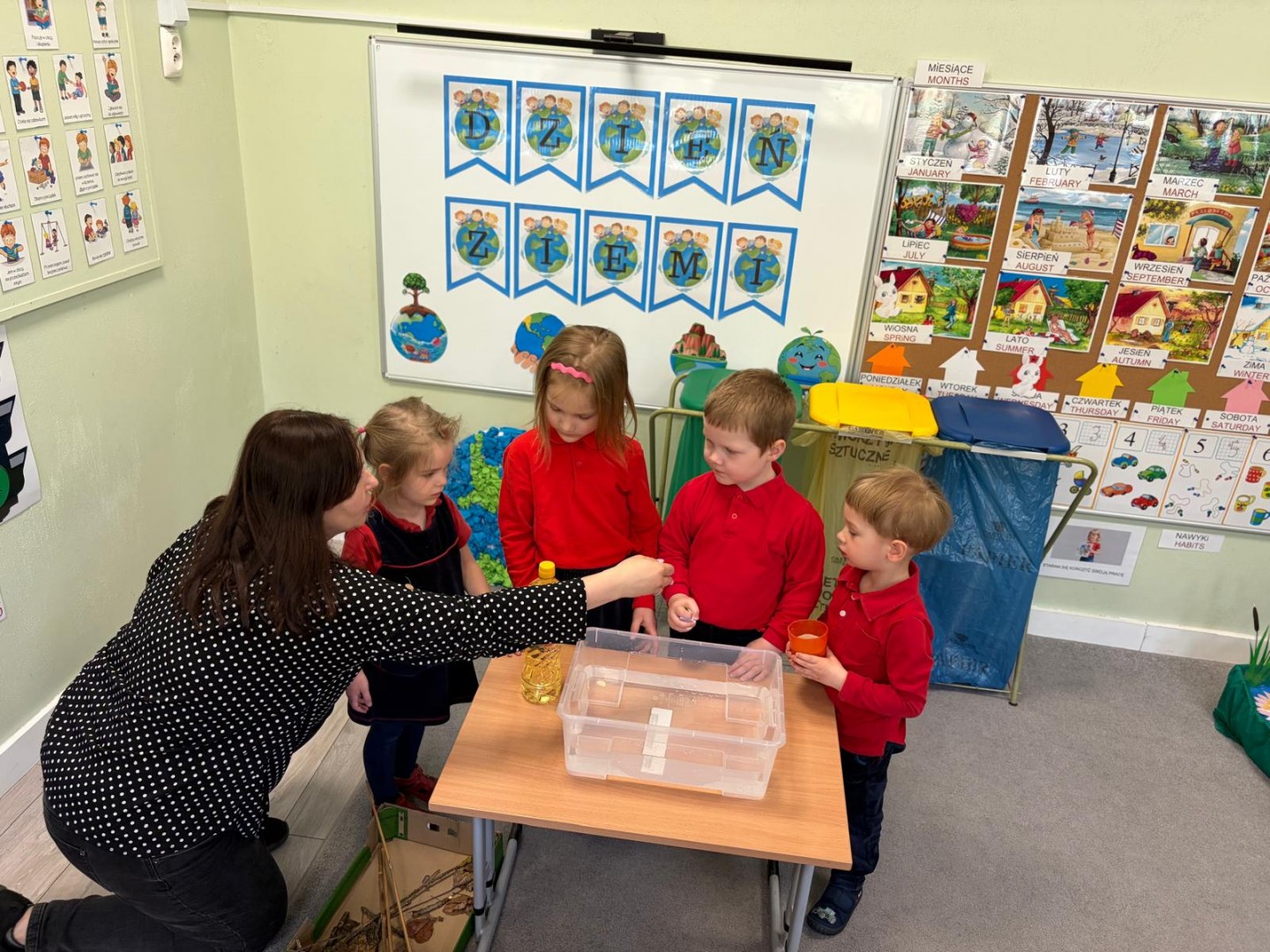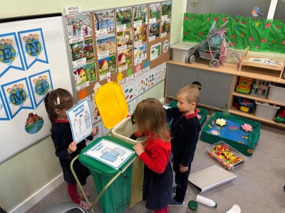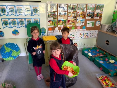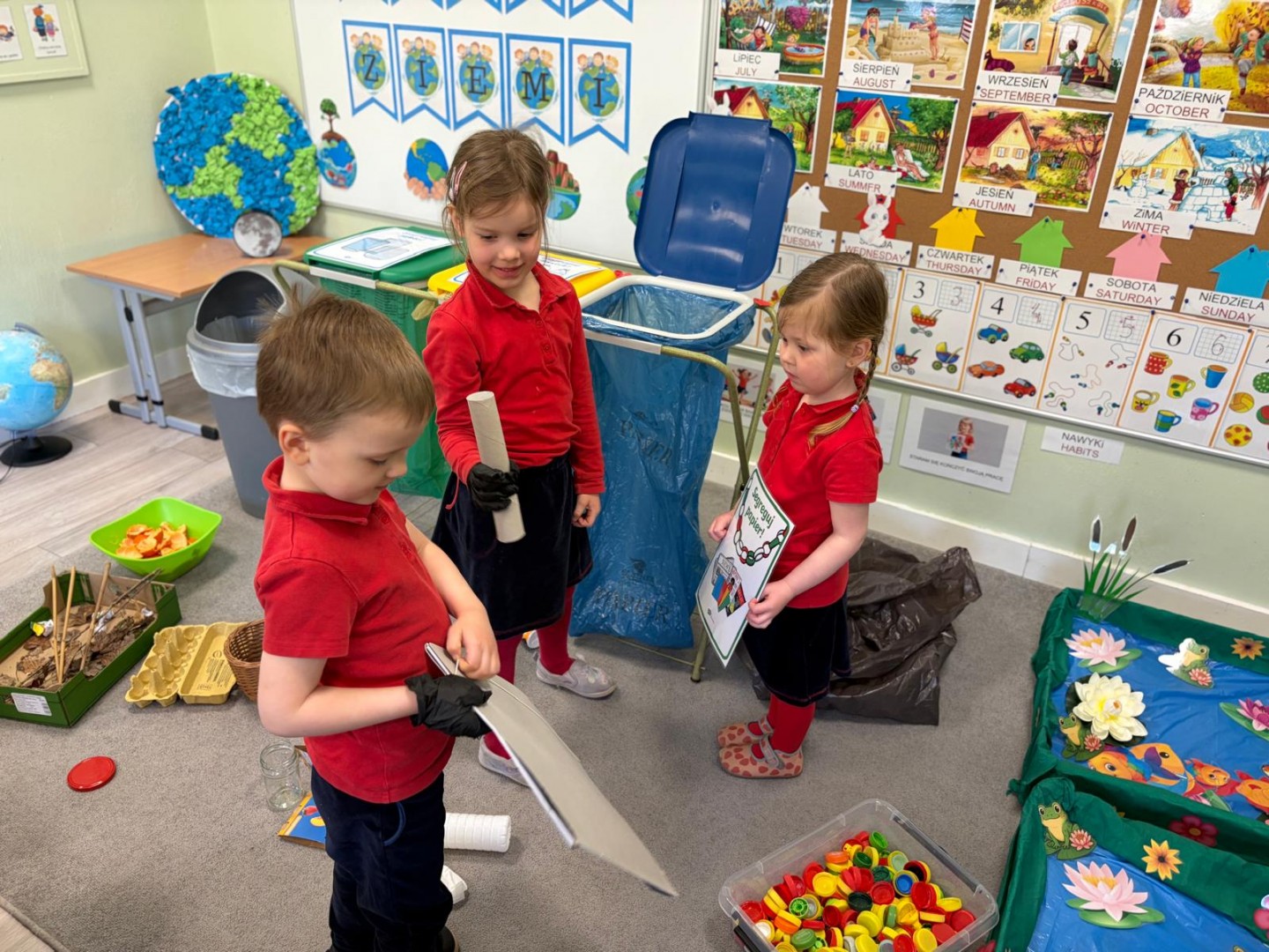 Podczas zajęć rozmawialiśmy o tym, jak dbać o środowisko. Dzieci wiedzą już, jak ważna jest segregacja śmieci oraz recykling. W sali zostały przygotowane specjalne worki na śmieci, a przedszkolaki z dużym zaangażowaniem segregowały odpady, wrzucając je do odpowiednich worków.
