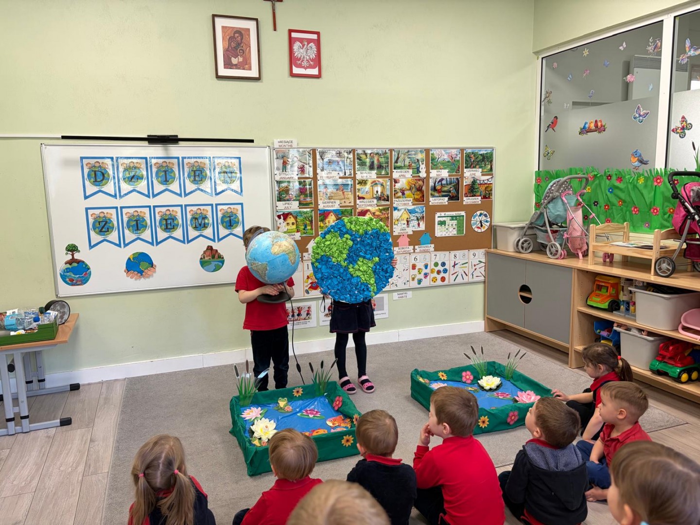 W naszym przedszkolu świętowaliśmy Dzień Ziemi. Z tej okazji dzieci wspólnie zaśpiewały piosenkę „Moja planeta Ziemia”, którą ćwiczyły z dużym zaangażowaniem.