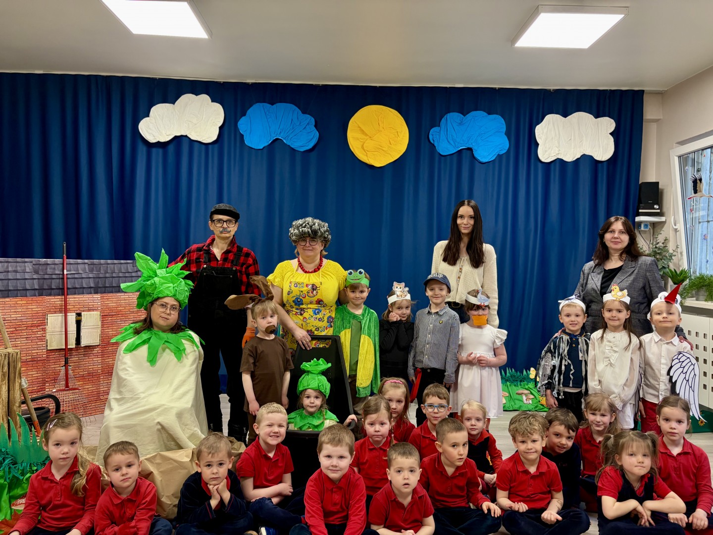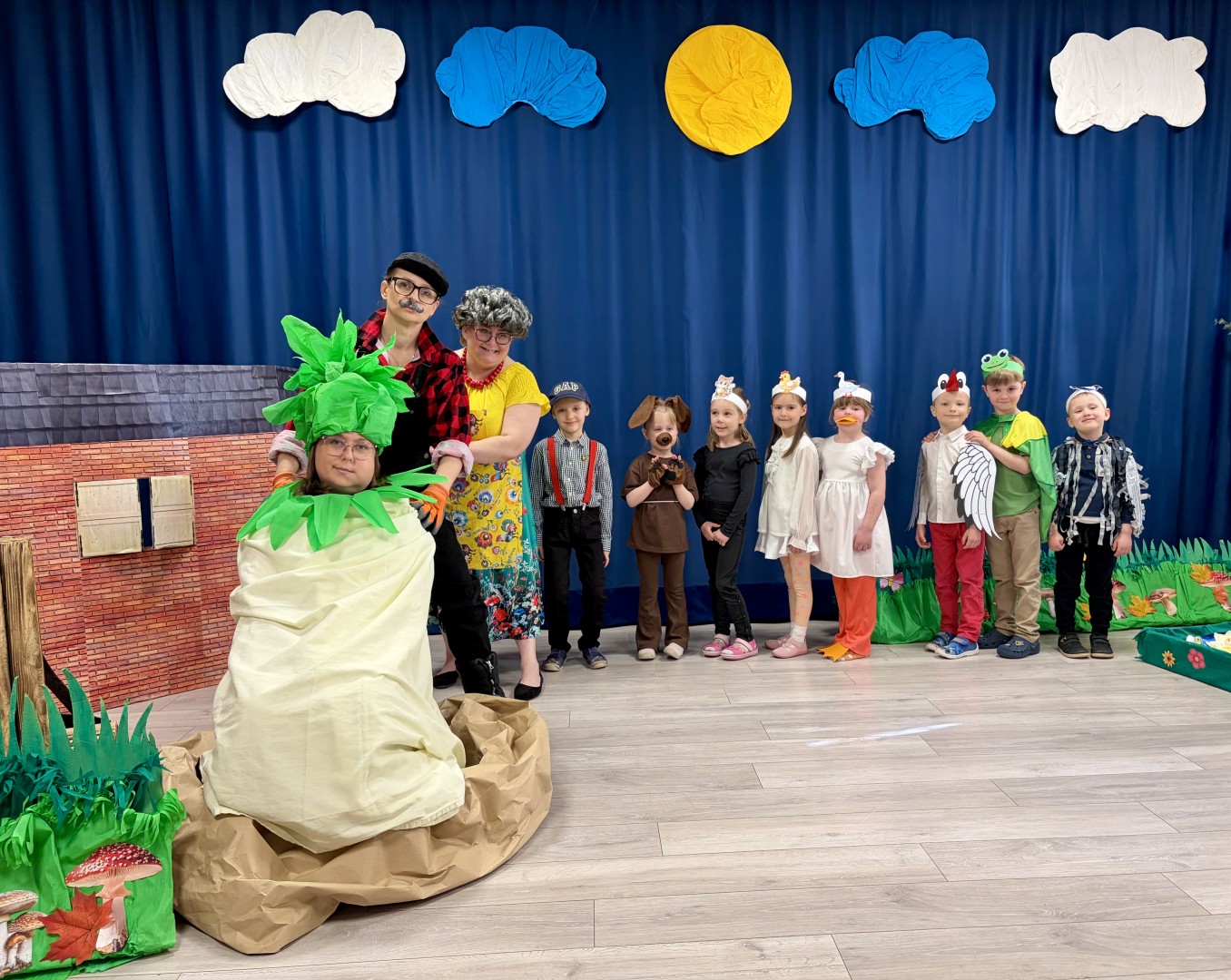 W naszym przedszkolu odbyło się wyjątkowe przedstawienie. Panie nauczycielki oraz przedszkolaki wspólnie wcielili się w bohaterów wiersza „Rzepka” Juliana Tuwima.