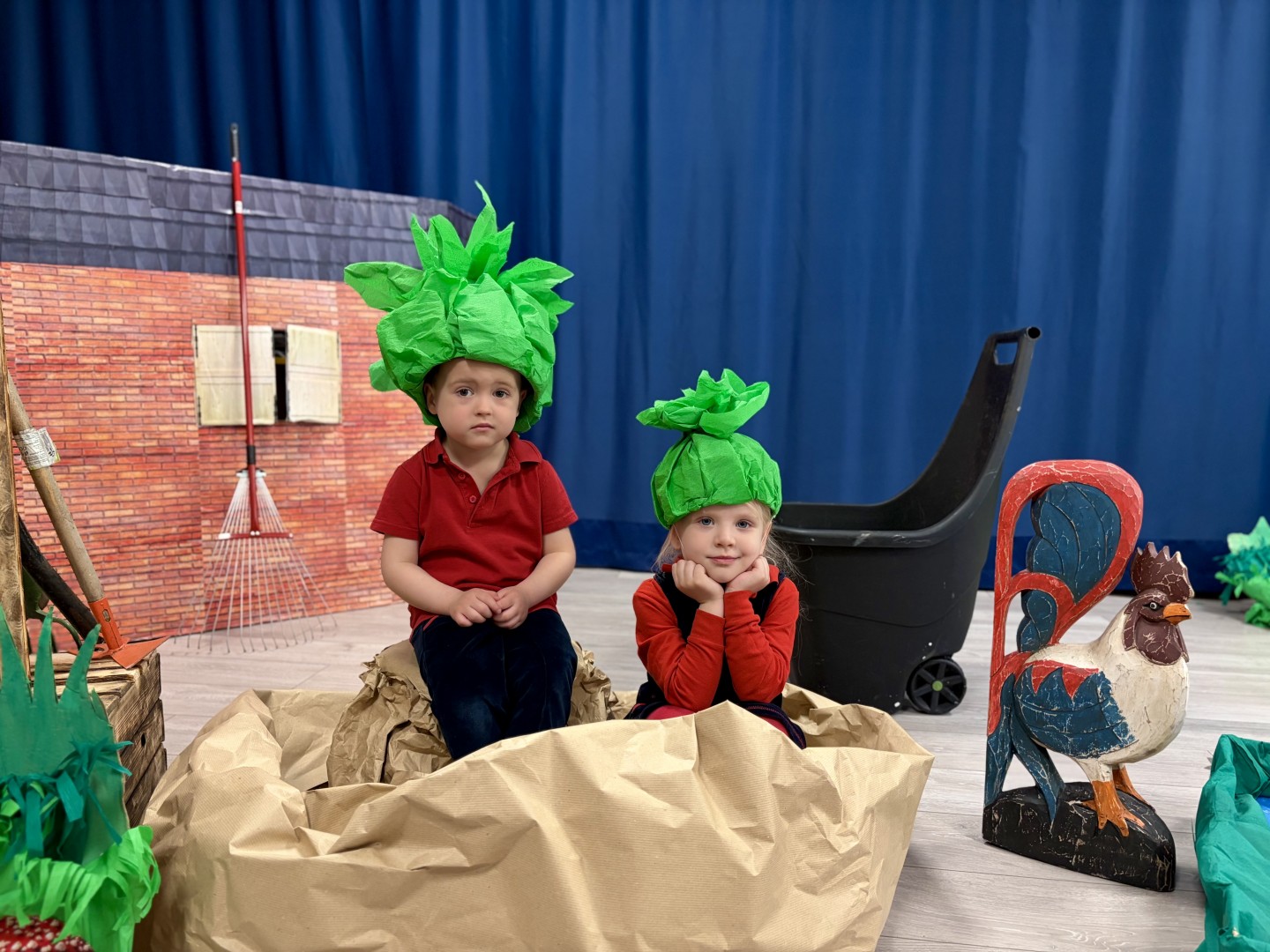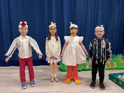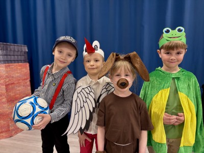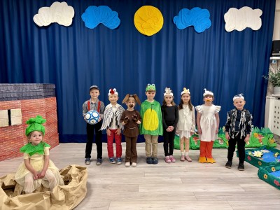Dzieci z ogromnym zaangażowaniem i radością odgrywały swoje role, a widzowie z uśmiechem śledzili pełne humoru przygody bohaterów. Nie zabrakło śmiechu, emocji i wspaniałej atmosfery! To przedstawienie pokazało, jak ważna jest współpraca i wspólne działanie. Dziękujemy wszystkim małym i dużym artystom za cudowny występ!