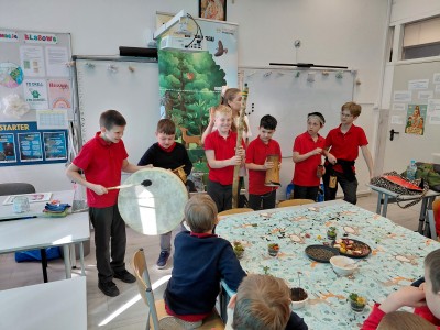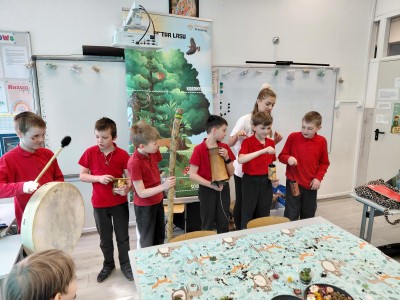 Chłopcy z klas 0-3 wzięli udział w warsztatach "Leśne opowieści".