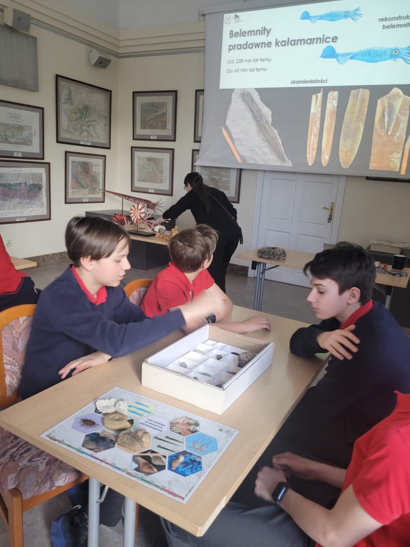 Uczniowie klasy 6A odwiedzili Państwowy Instytut Geologiczny gdzie wzięli udział w warsztatach „Władcy pradawnych mórz”. Podczas zajęć poznali najważniejsze wymarłe zwierzęta i dowiedzieli się jakie pozostawiły po sobie ślady. Chłopcy byli bardzo zainteresowani zarówno warsztatami jak i zwiedzaniem wystawy z przewodnikiem. Był to dzień pełen zarówno nauki jak i integracji zakończony wspólnym obiadem.