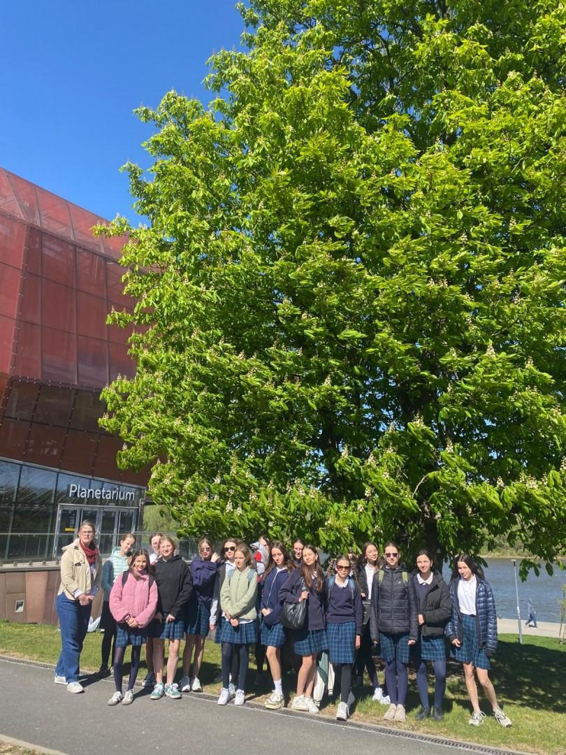 Uczennice klasy 7P wybrały się do Centrum Nauki Kopernik. Odwiedziny rozpoczęły od wizyty w Planetarium i udziału w seansie „Voyager”: Niekończąca się podróż. Dziewczęta mogły zgłębić wiedzę na temat sond kosmicznych i poznać sekrety najdalszych planet w naszym Układzie Słonecznym. Temat seansu jak i przebieg prezentacji zaciekawił Uczennice i pozwolił na rozpoczęcie dyskusji na temat możliwości związanych z eksploracją odległych planet i potencjału drzemiącego w zgłębianiu astronomii. Uczennice mogły uczestniczyć też w pikniku przed Centrum Nauki co było dla nich dodatkową atrakcją.